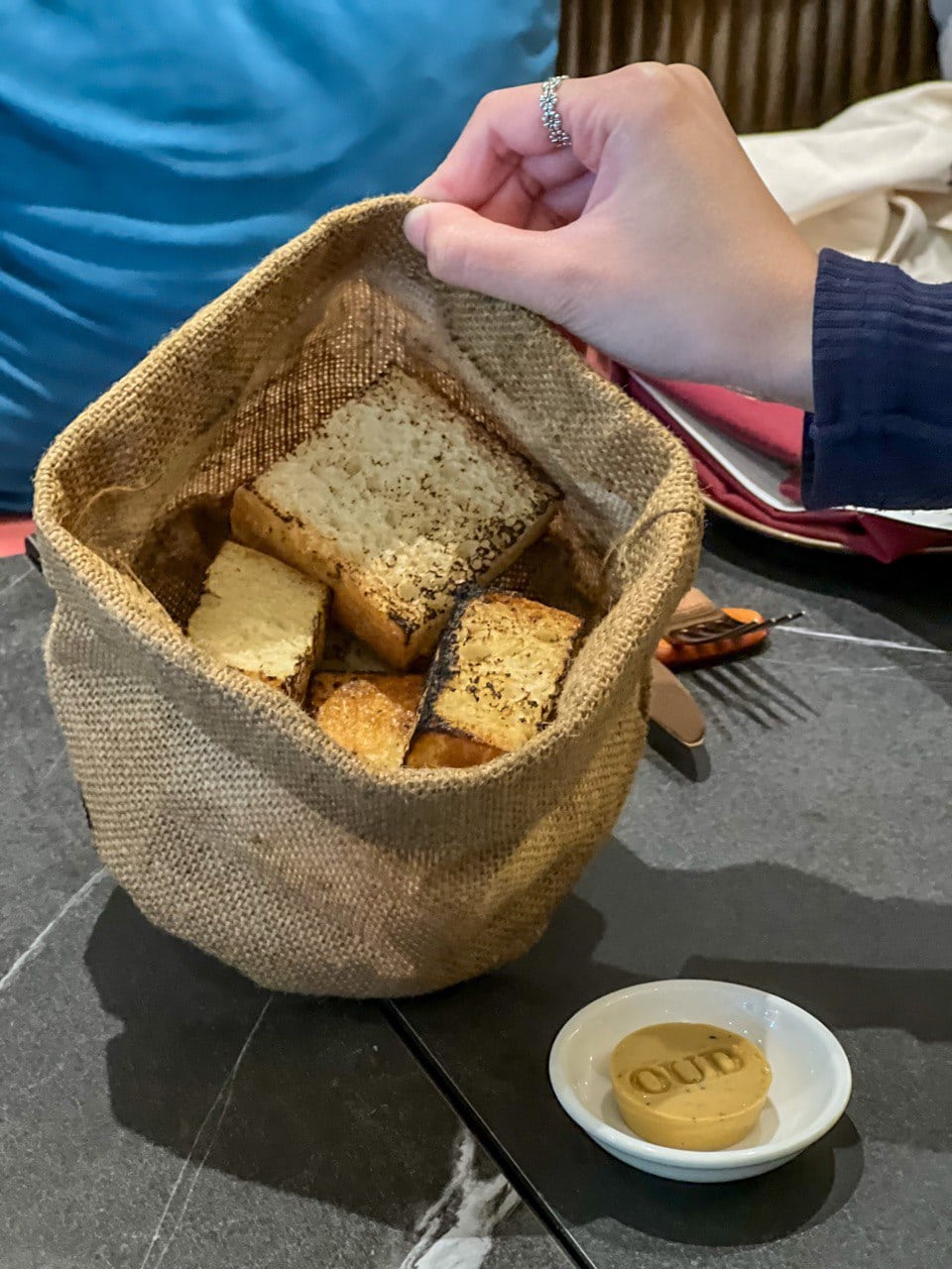 On the menu at OUD Restaurant are some interesting appetisers that are best enjoyed when you “Use ‘Em Hands”. We started off with the Caviar Cornets (S$11 per piece, minimum two pieces) — crispy cornets filled with creamy cheese and topped with luxurious caviar. While indulgent as expected, I felt the briny flavour of the cream cheese overshadowed the delicate oceanic notes of the caviar.