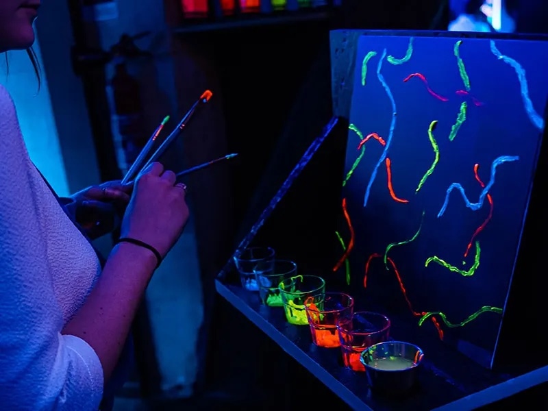 As a participant, you will get to immerse yourself in a fluorescent neon-lit setting with ambient music playing in the background and unleash your inner artist.