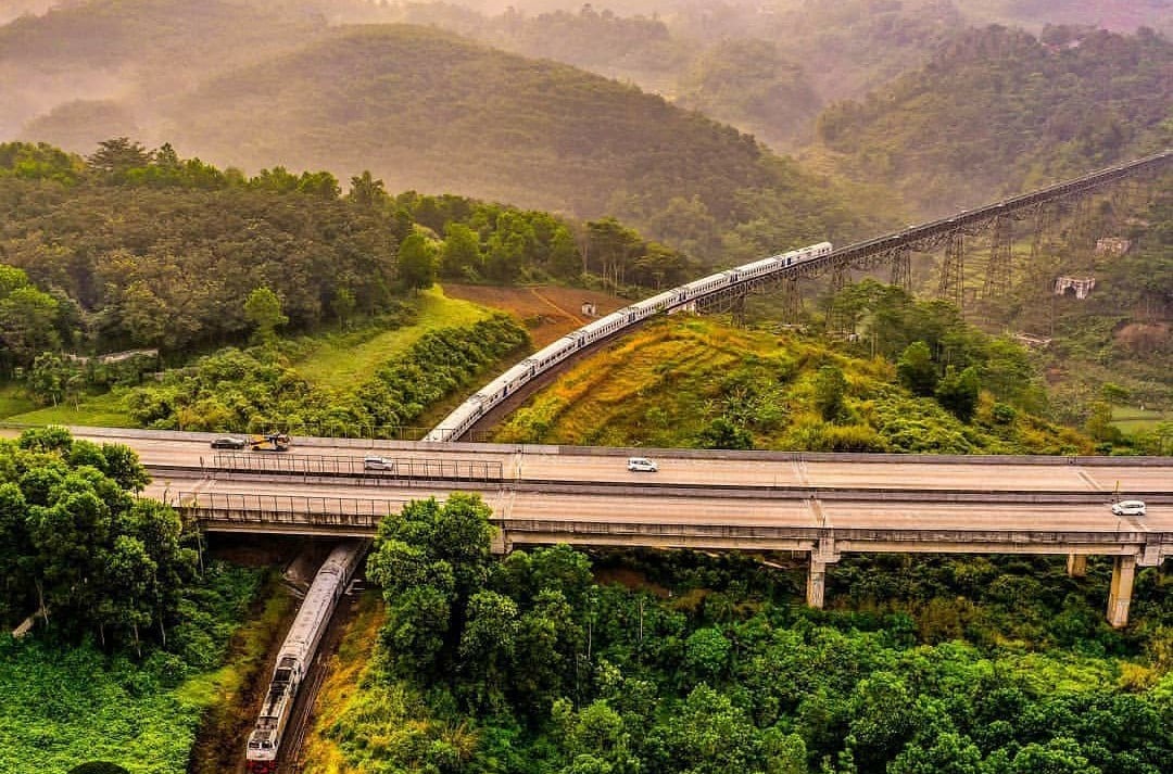 Most of the sights begin after you pass Purwakarta Station, which is also known as the train graveyard. Vast blue skies and looming mountains in the distance will accompany you throughout the ride, along with lush rice terraces, valleys, forests, historical railway structures, and plenty of elevated bridges like the Cisomang Bridge and Cikubang Bridge that will make you feel as if you’re floating above the world.