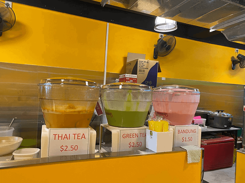 Beverages also include Thai Iced Milk Tea (S$.2.50), Green Tea (S$2.50) and Bandung (S$1.50)— perfect to wash down all that grub.