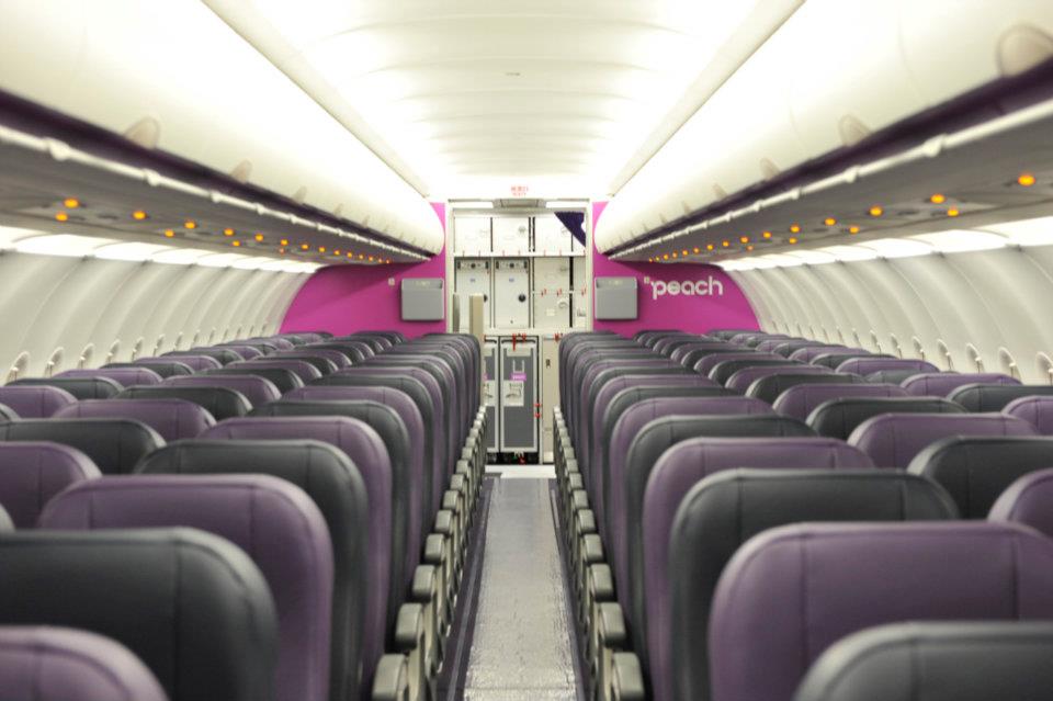 Opting for Peach Aviation means you’ll be flying on an Airbus 321LR, a sleek single-aisle aircraft with a three-three seating layout and a total of 218 seats.