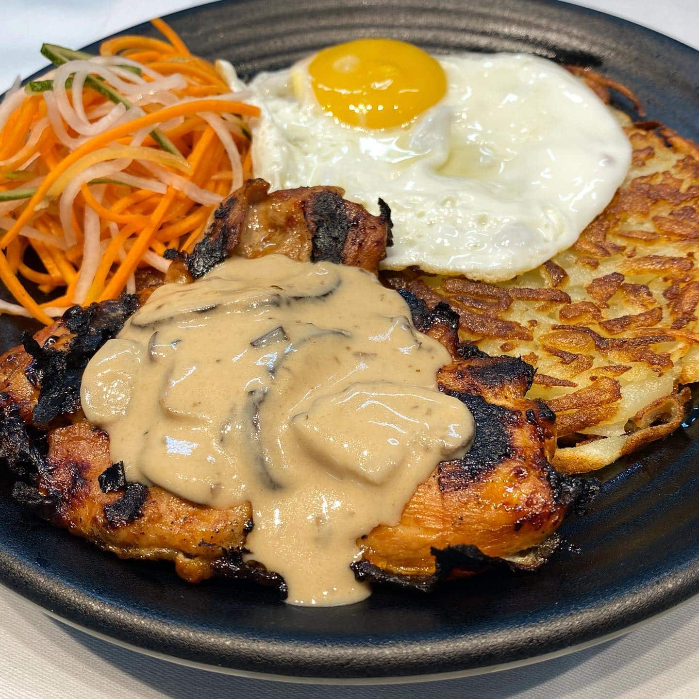 Rosti aside, you can also find rice and baguettes (inspired by banh mi) with the same selection of proteins. The Signature Saigon Pork (S$8.90) is served with rice, pickles and a sunny side up, making for a full and satisfying meal that won’t break the bank.
