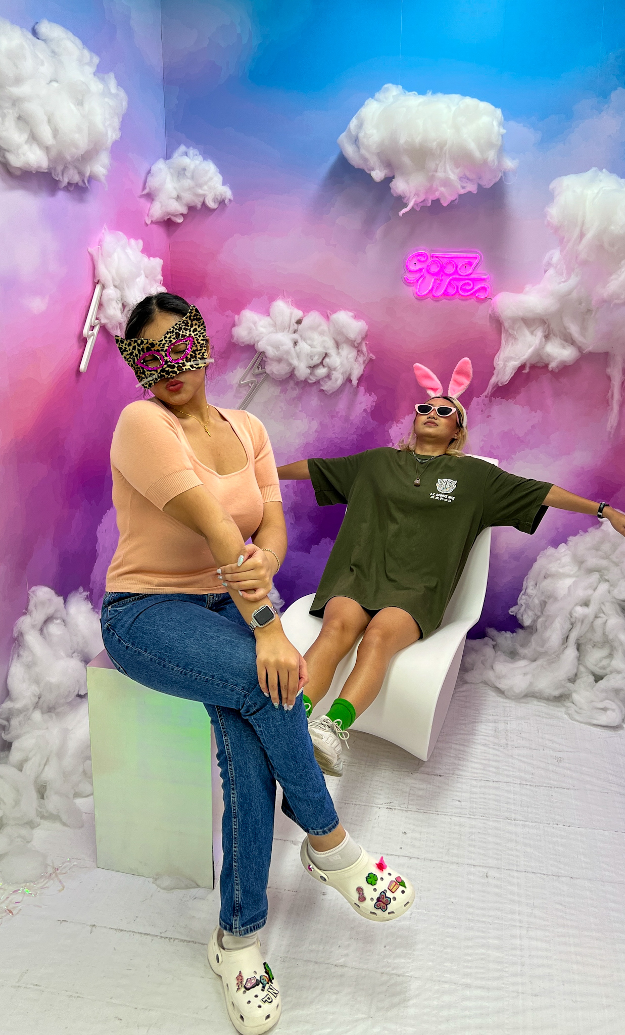 Going for a chill, pastel summer vibe? Try out the first booth, which also happens to be the largest, with rainbows, fluffy clouds and neon lighting for you to pose against.