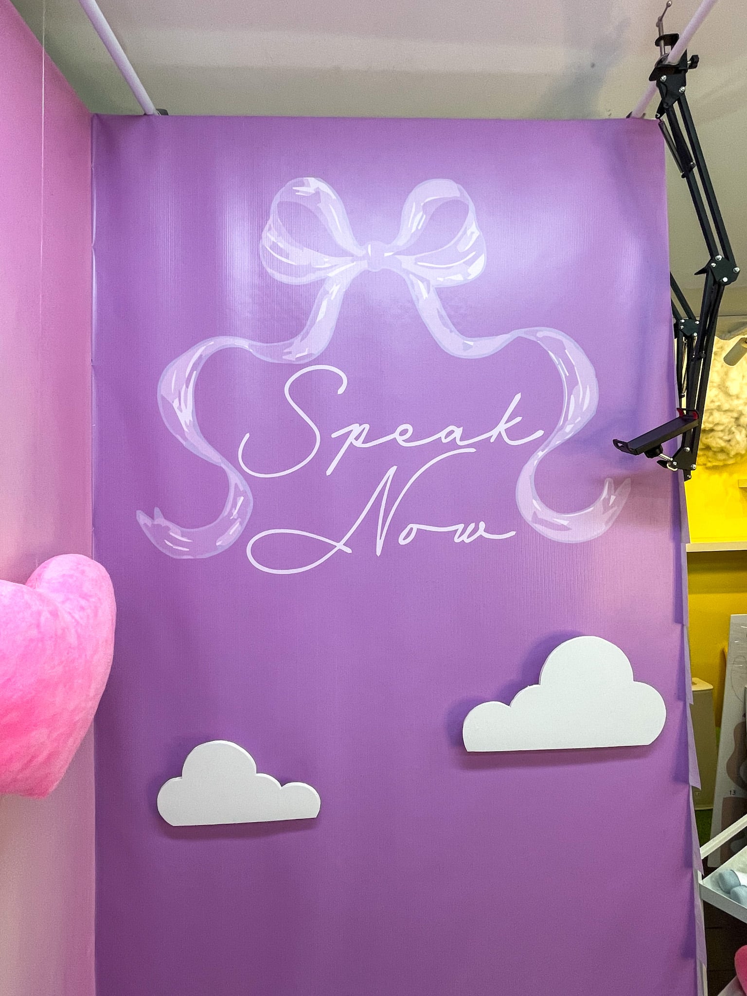 The Speak Now wall calls for the most dramatic and enchanting pose. Bonus points if you come dressed in a dramatic outfit or in purple to recreate the vibes of the album cover!