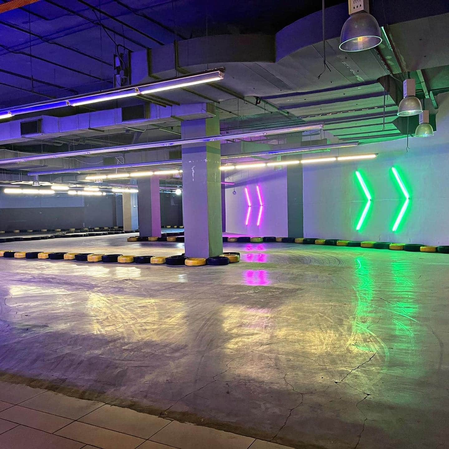 The entire circuit is lit with neon LED lights that shine in shades of purple, blue, and some green while the edges are lined with tires. This gives the place a splash of authenticity and really sets you in the vibes of go-karting, almost teleporting you away from the mall.