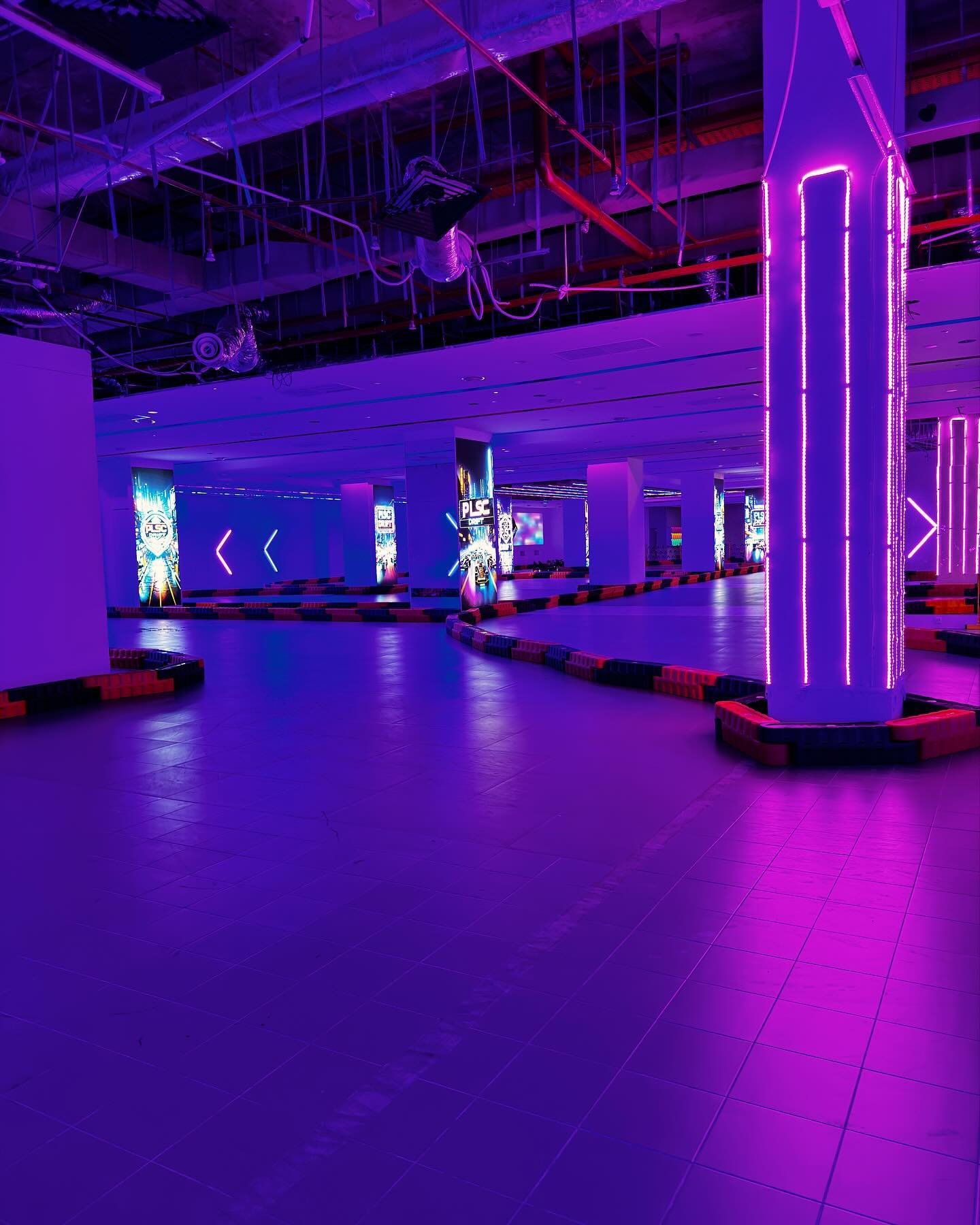 As you can already tell, this circuit is filled with many fun sharp twists and turns, fluorescent LED lights, and rainbow-lit race karts — it’s giving a mix of cyberpunk-themed and Mario Kart kinda vibes.