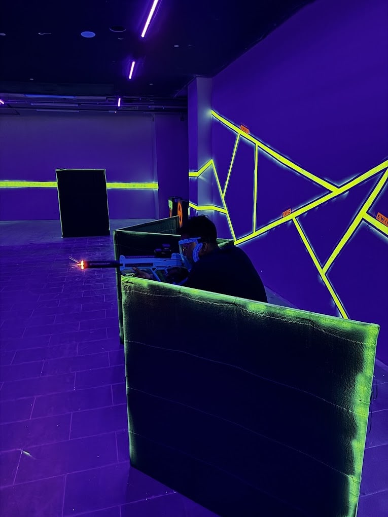 Besides that, there are glow-in-the-dark strips lined all over the walls alongside neon purple LED lights to truly get you in the competitive spirit — almost like Halo or PUBG in real life.