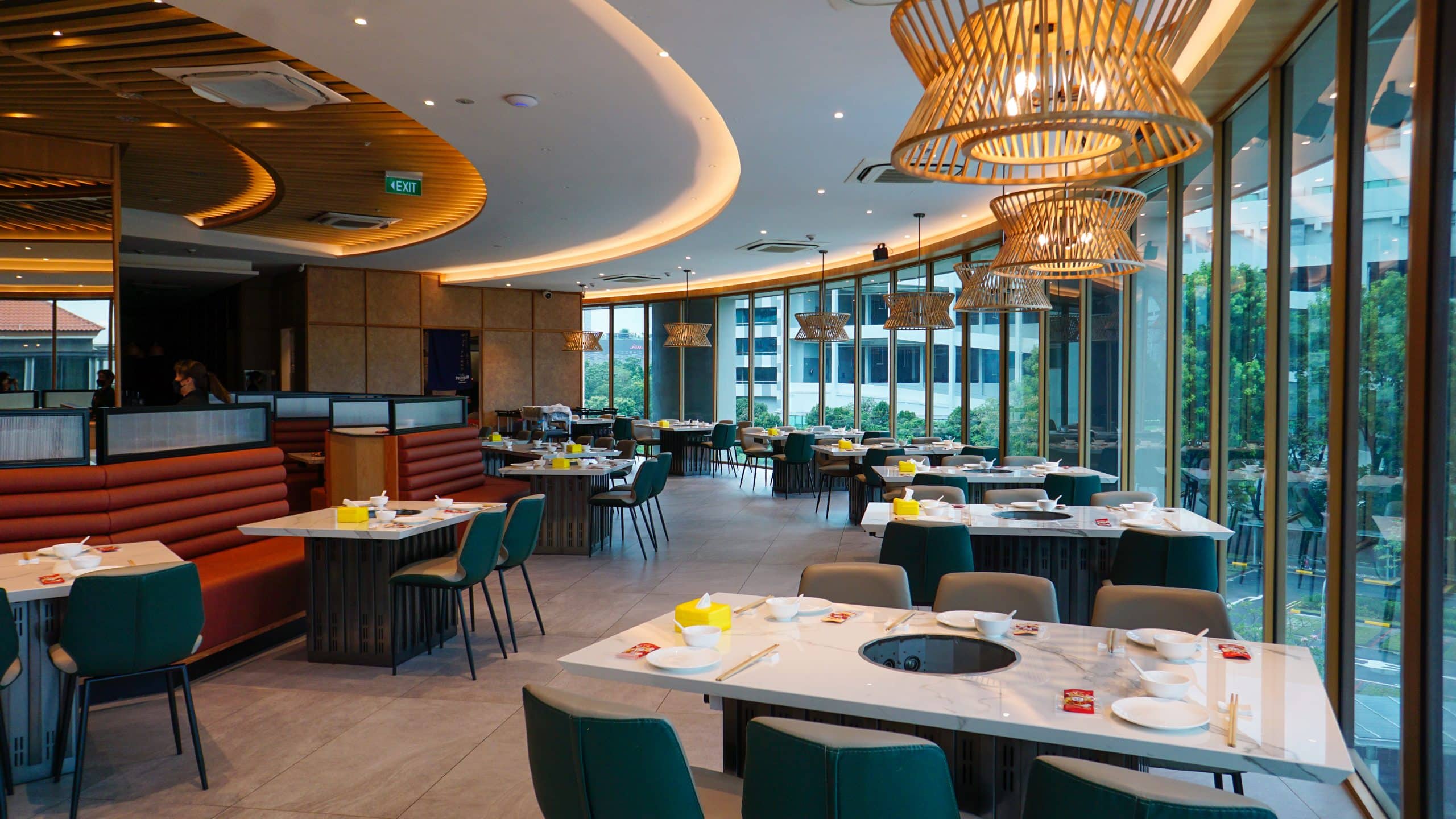 The spacious, well-lit 196-seater restaurant is casual with a welcoming ambience. Tables are comfortably spaced apart, fulfilling both social distancing requirements and ensuring a pleasant dining experience for all guests. You’ll get to enjoy your hotpot with a view (of the pool, that is) and soak in the “country club vibes”.