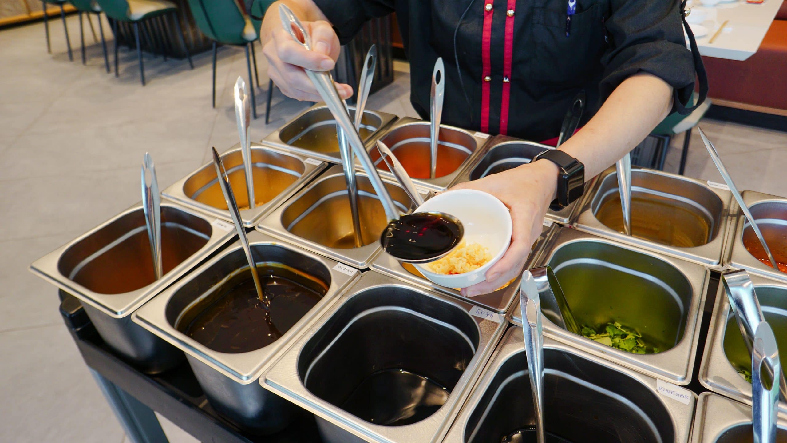 S$5 (per pax) will get you a choice of beverage, condiments, fruits, and ice cream — all free-flow. The staff will roll up with what I call “the sauce station” and dish out condiments according to your preference.