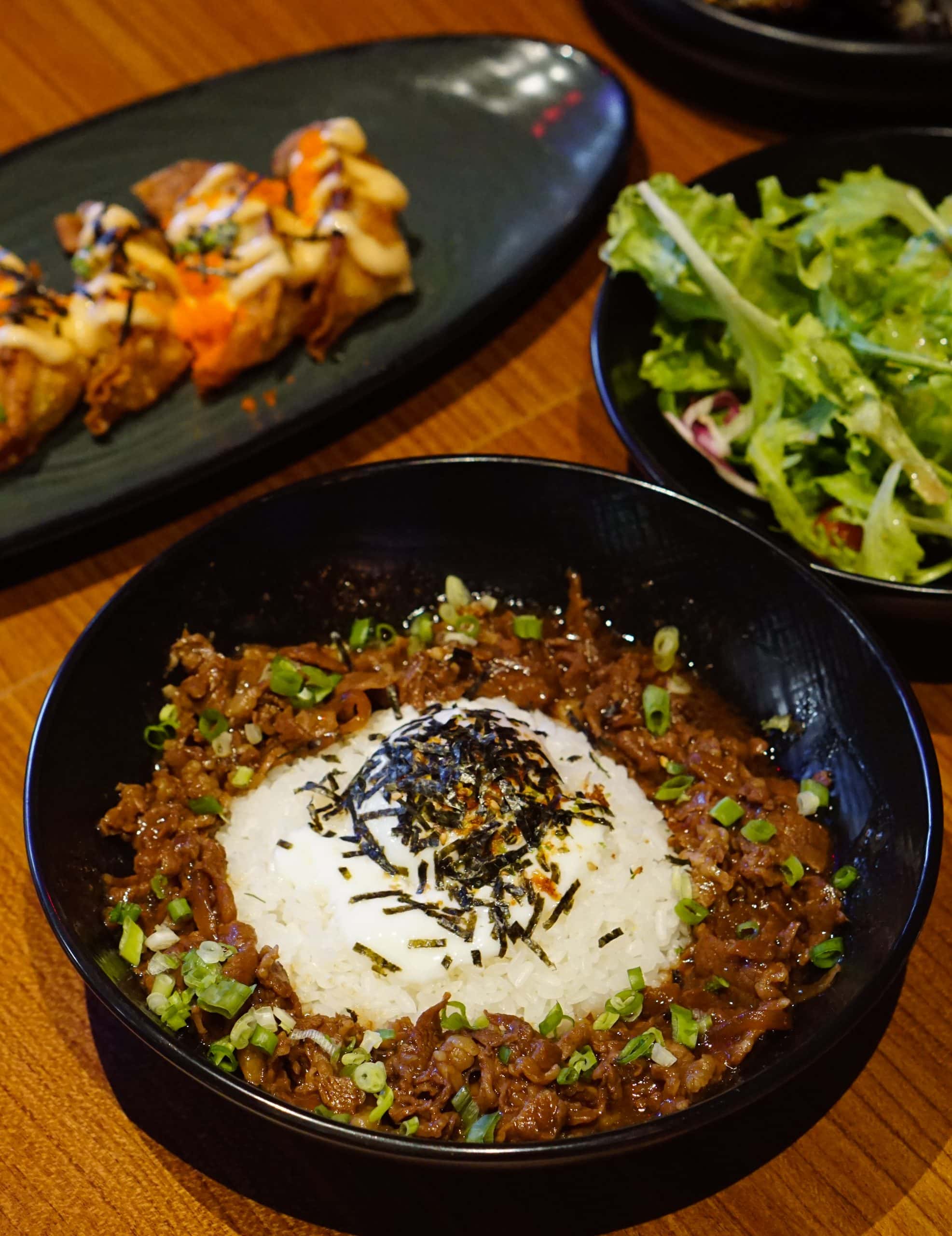 Instead of the typical raw dish, the sushi tacos served here contain either cooked seafood or meat — we enjoyed both the Cluck-A-Dilla (S$5.90), topped with chicken karaage and spring onions, and the El Moo Moo (S$5.90), a moreish teriyaki beef and caramelised onion number.