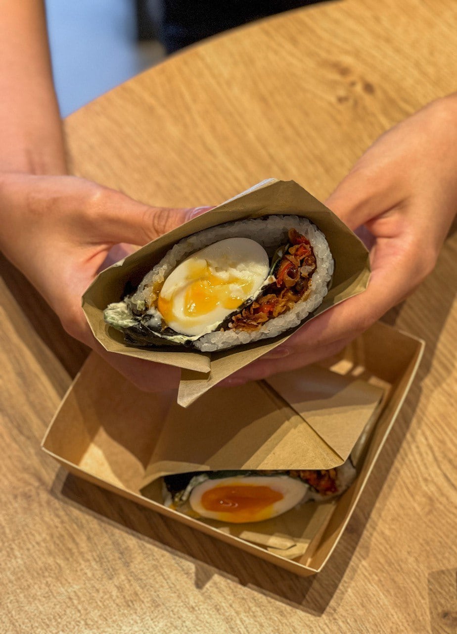 The Mentaiko Spam Tatami features a classic rice roll filled with spam katsu, egg, and shredded cabbage, all drizzled with mentaiko sauce. Needless to say, it was a safe choice, boasting a flavour most people will enjoy (I mean, it’s hard to go wrong with mentaiko).