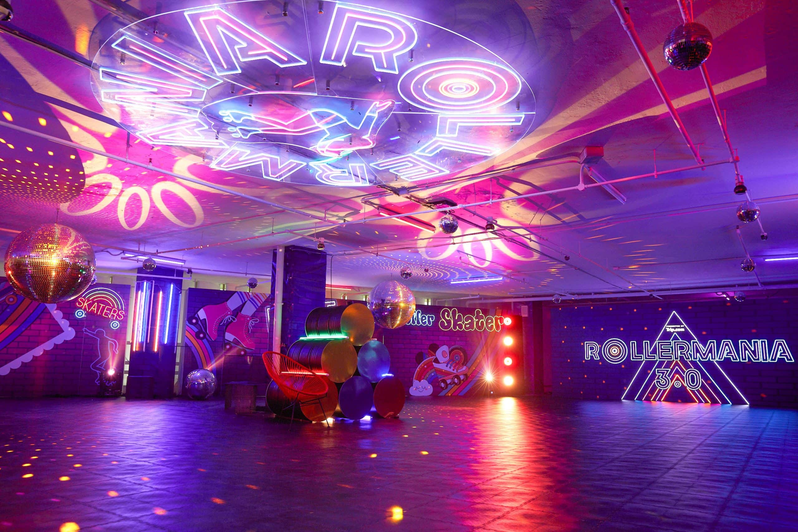 The entire car park space on level seven has been transformed into a flashy skating rink decked in vibrant neon lights with funky music from the 70’s, 80’s and 90’s playing in the background — super old school vibes.