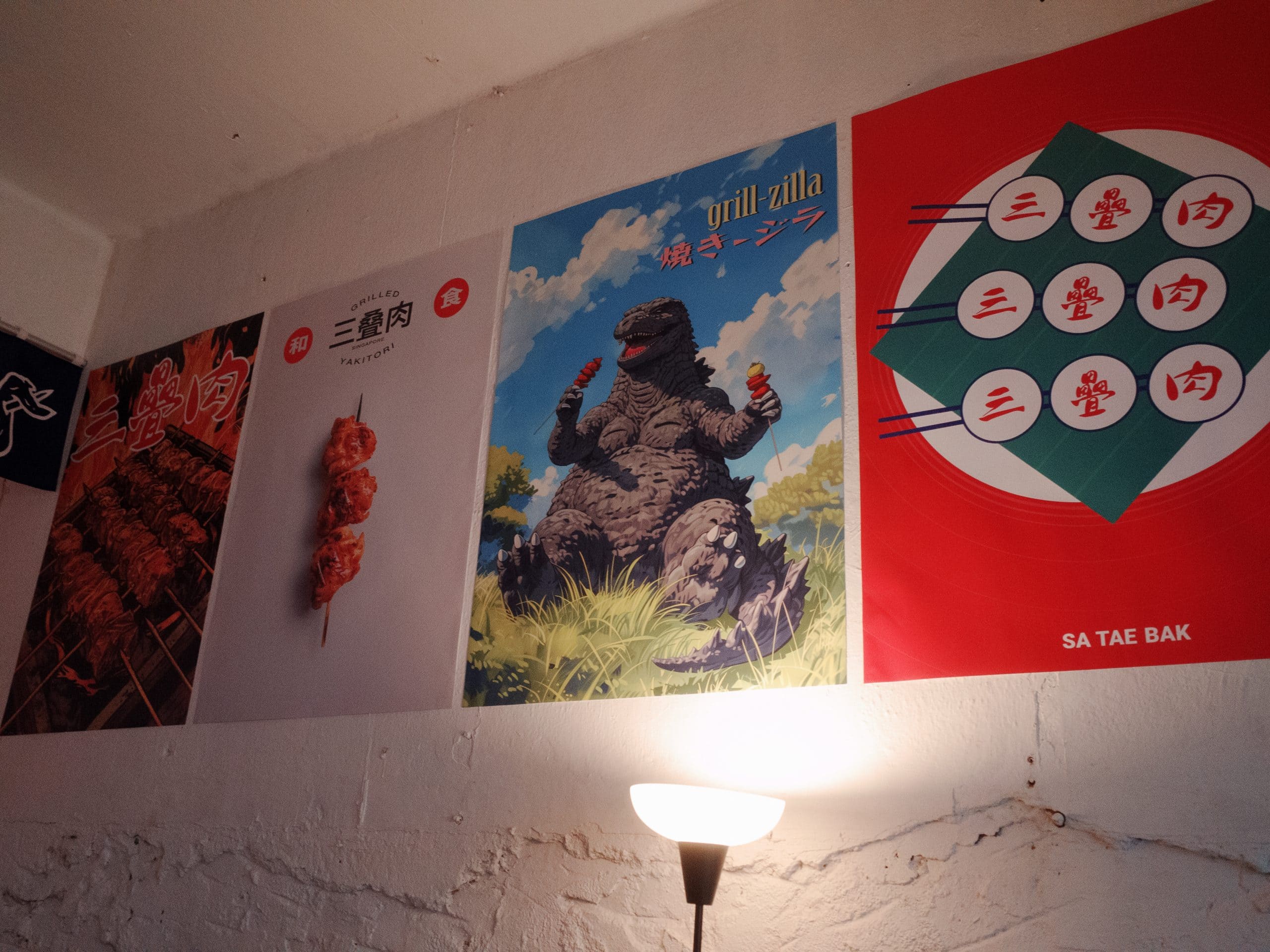 Despite being catered to couples, larger groups, and families, the space is super cosy, thanks to the eclectic mix of retro lamps and walls lined with wacky posters.