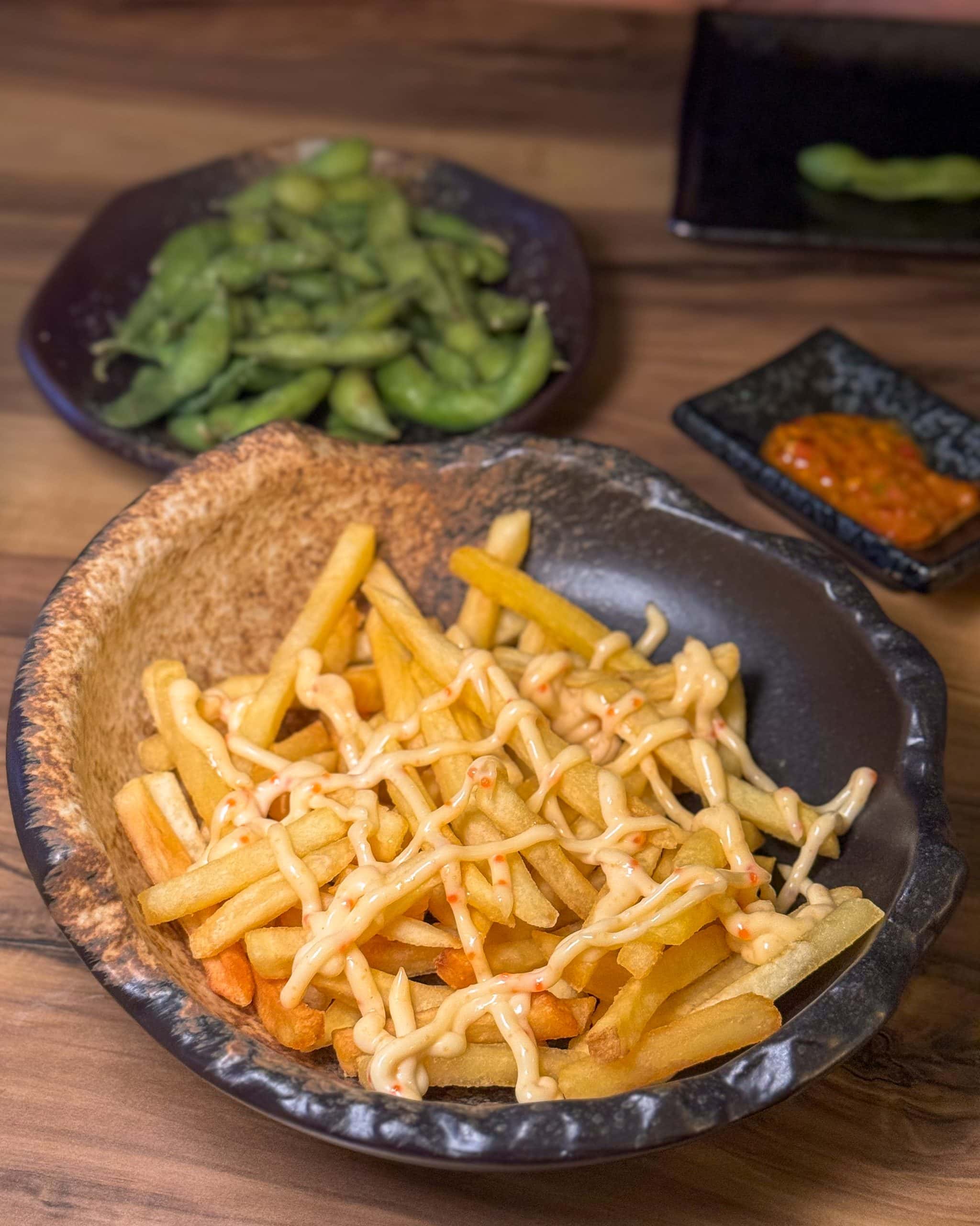 Food-wise, there are plenty of appetisers to start with, ranging from Edamame (S$5.50) and Grilled Ray Fin (S$8) — one of my all-time favourite snacks to pair with beer — to French Fries Mentaiko (S$9) and Fried Chicken Skin (S$7).