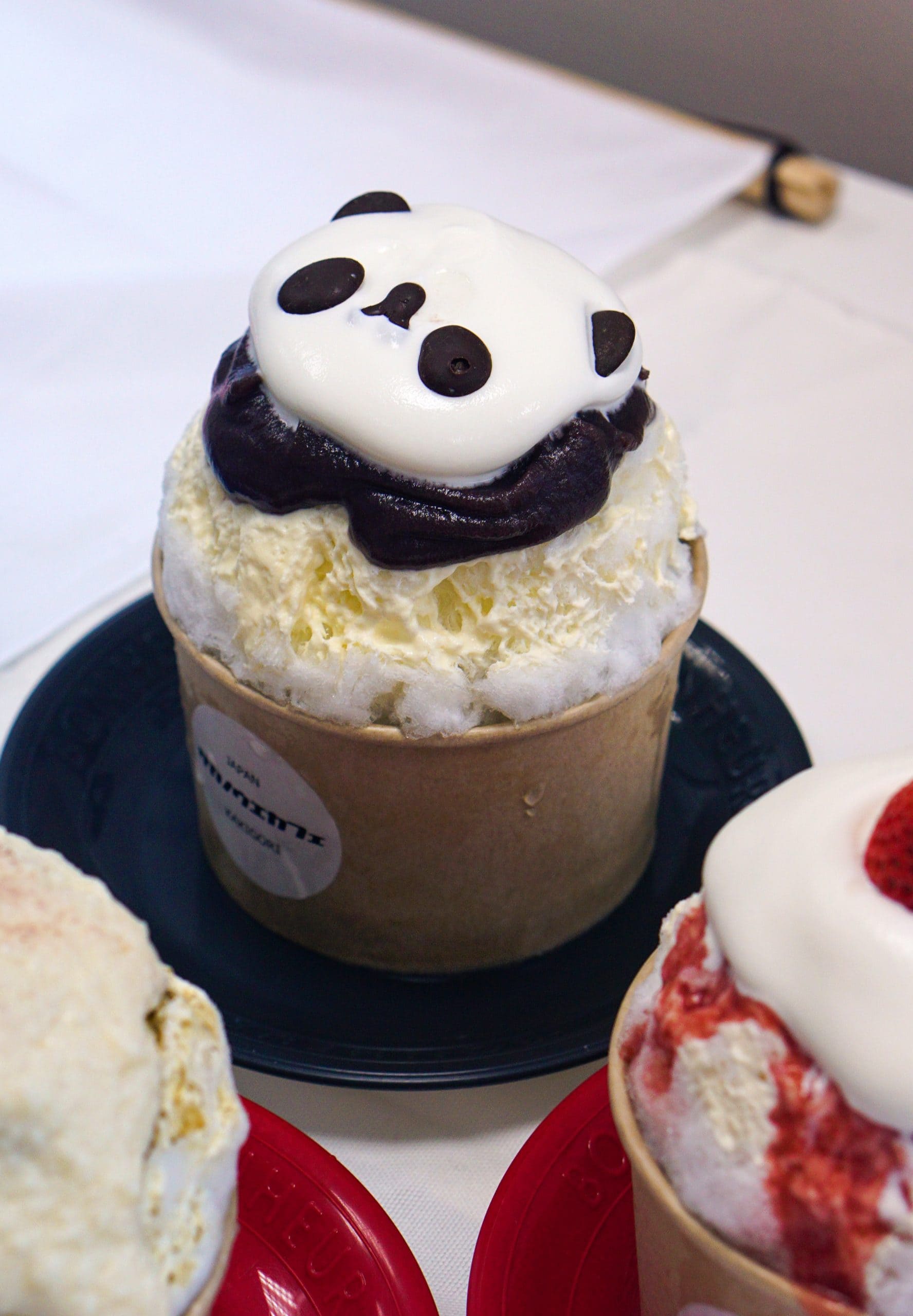 The most adorable of the lot is, of course, the Anko, Cream and Panda, which simply comprises sweet red bean paste, fluffy fresh cream, and strawberry and cherry-flavoured domyoji (sakura mochi). It may look too cute to eat, but don’t wait too long while taking photos, because kakigori tends to melt very quickly!