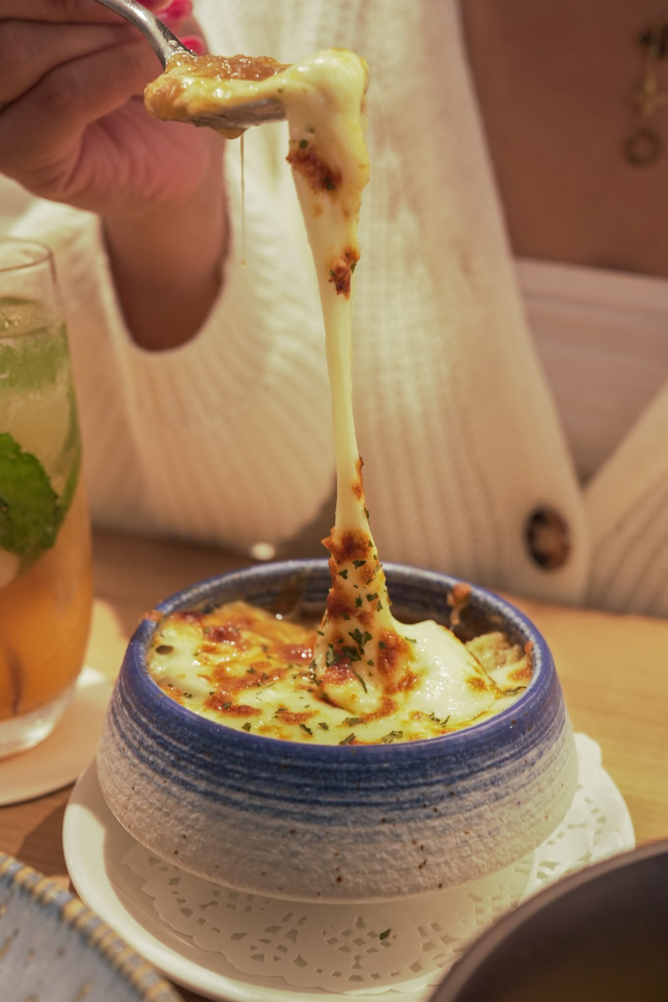 The soup comprises caramelised onions, beef chunks, toast, and a generous amount of cheese to give you an oh so satisfying and IG-worthy cheese pull. I loved how each element in this soup complemented each other. The beef chunks added a nice beefiness to the soup, while the onions added a nice sweetness and subtle crunch.