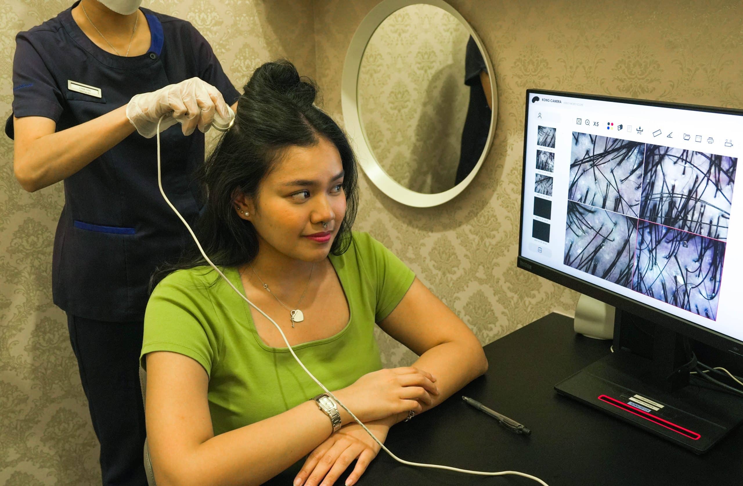 After filling in a detailed questionnaire, Putri got her scalp scanned using their trusty Tricho-scan, which magnifies the scalp by up to a whopping 200 times, and the results were pretty nasty.