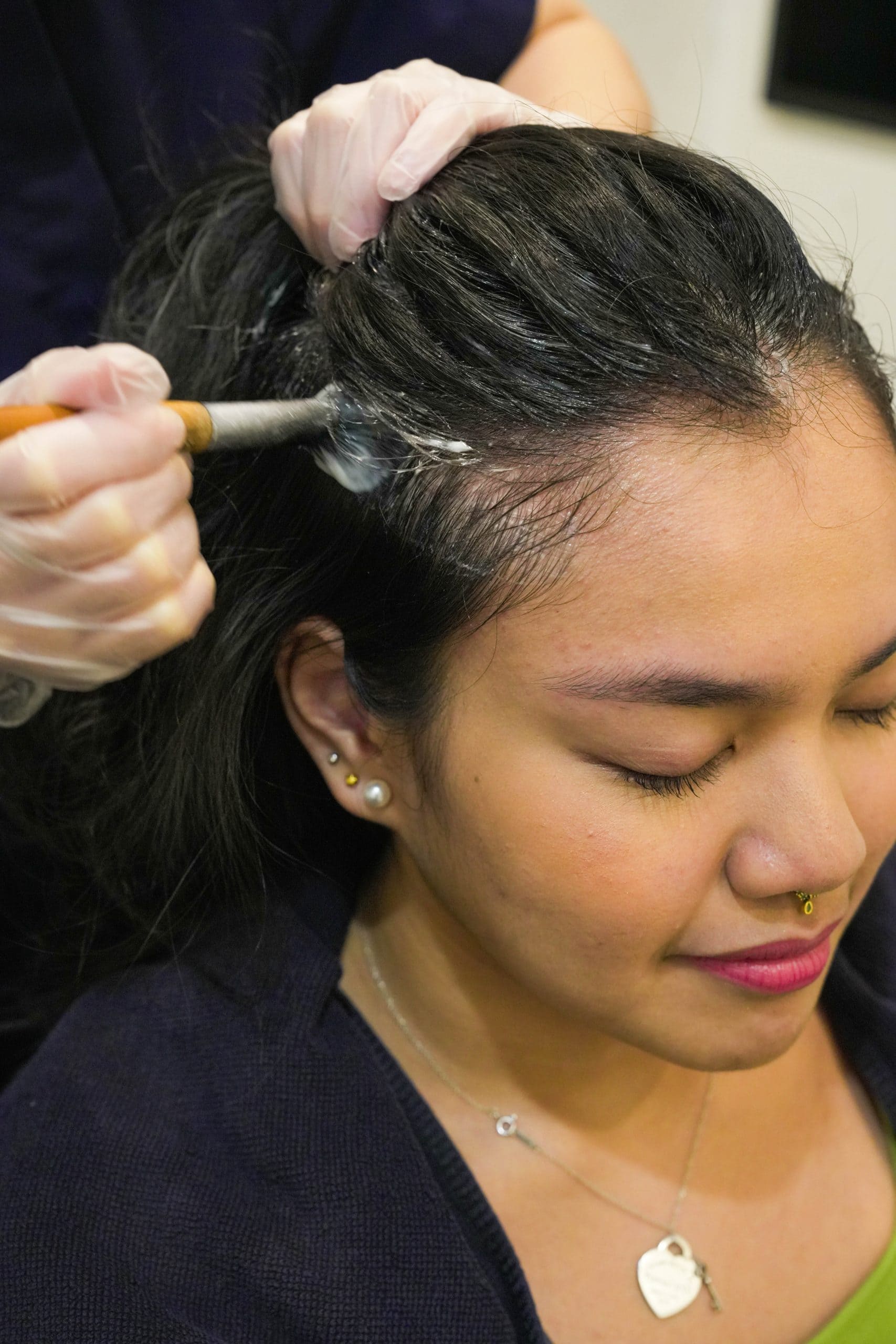 Afterwards, a detailed treatment plan was drafted, which started off with a Premium European Herbal Scalp Masque that helps to regulate grease, rebalance a stressed scalp, and leave hair feeling soft and smooth.