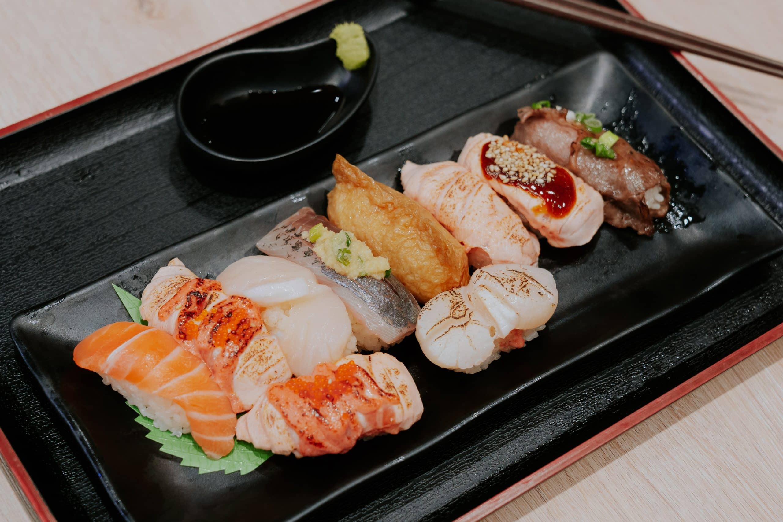 You can get the likes of Sanma, Amaebi, and Maaji (Horse Mackerel) for as low as S$1, but most varieties of sushi are priced from S$1.50 to S$5, with the exception of premium options like Fresh Sea Urchin (S$12), Honmaguro Otoro with Uni (S$6), and Aburi Wagyu (S$6).