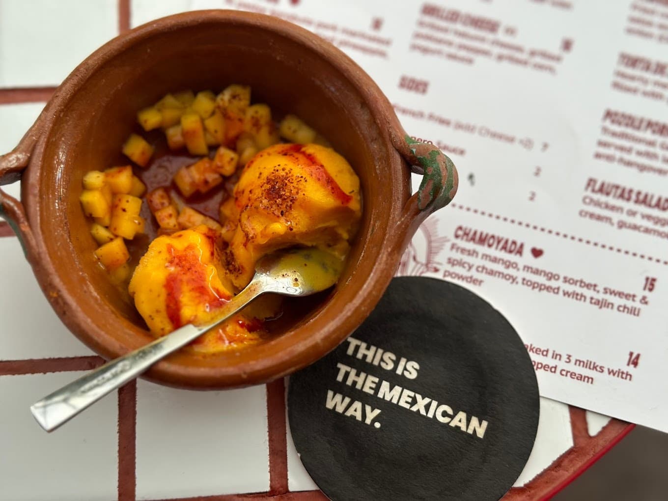 However, I felt that the highlight of this meal was definitely the Chamoyada (S$15). Think of it as a mango sorbet with chunks of fresh mango, topped with tajin chilli powder and Chamoy (Mexican savoury sauce) drizzle.
