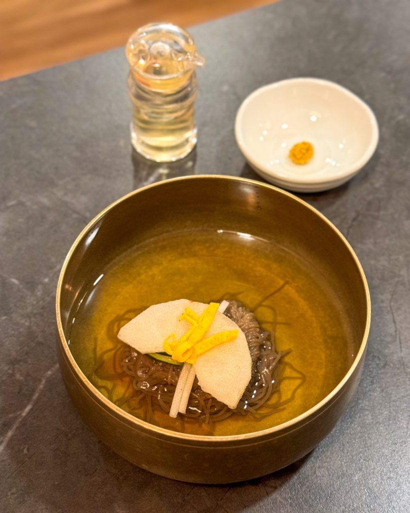 You can also end the meal with a comforting stew (think classics like Sunbudu-jjigae and Doenjang-jjigae), or a refreshing Mul-naengmyeon — a must-have after all those smoky grilled meats.