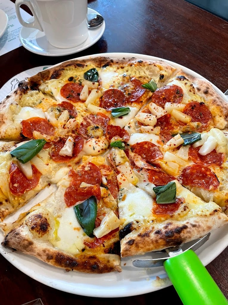 Contrary to its name, the pizza comprises onion bechamel, caramelised onions, and pickled butternut.