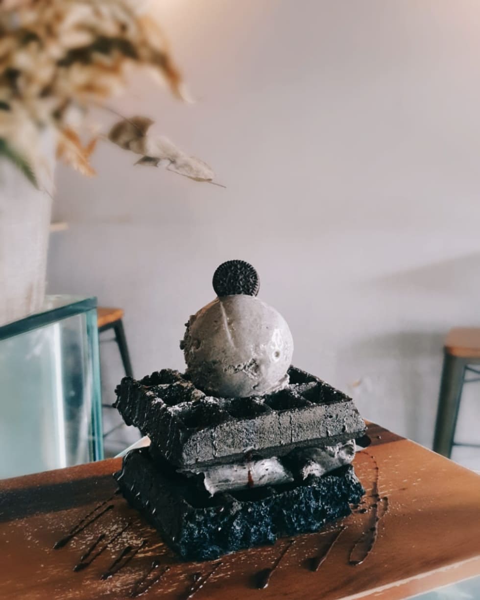 This includes Charcoal (S$7), Kinder Bueno (S$8) and Ferrero Rocher (S$9) waffles that are loaded with sweet fillings and syrup.