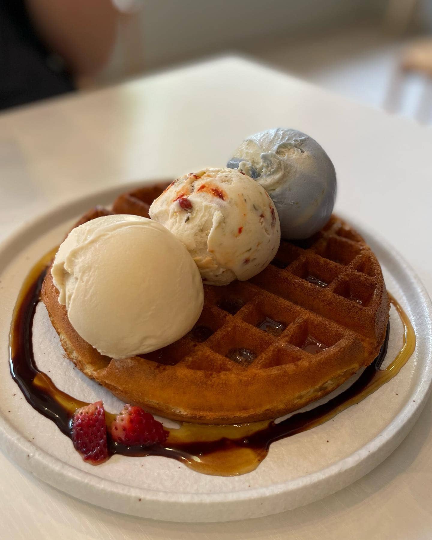 While it is common to pair waffles with your ice cream, they put their own creative twist to the waffles.