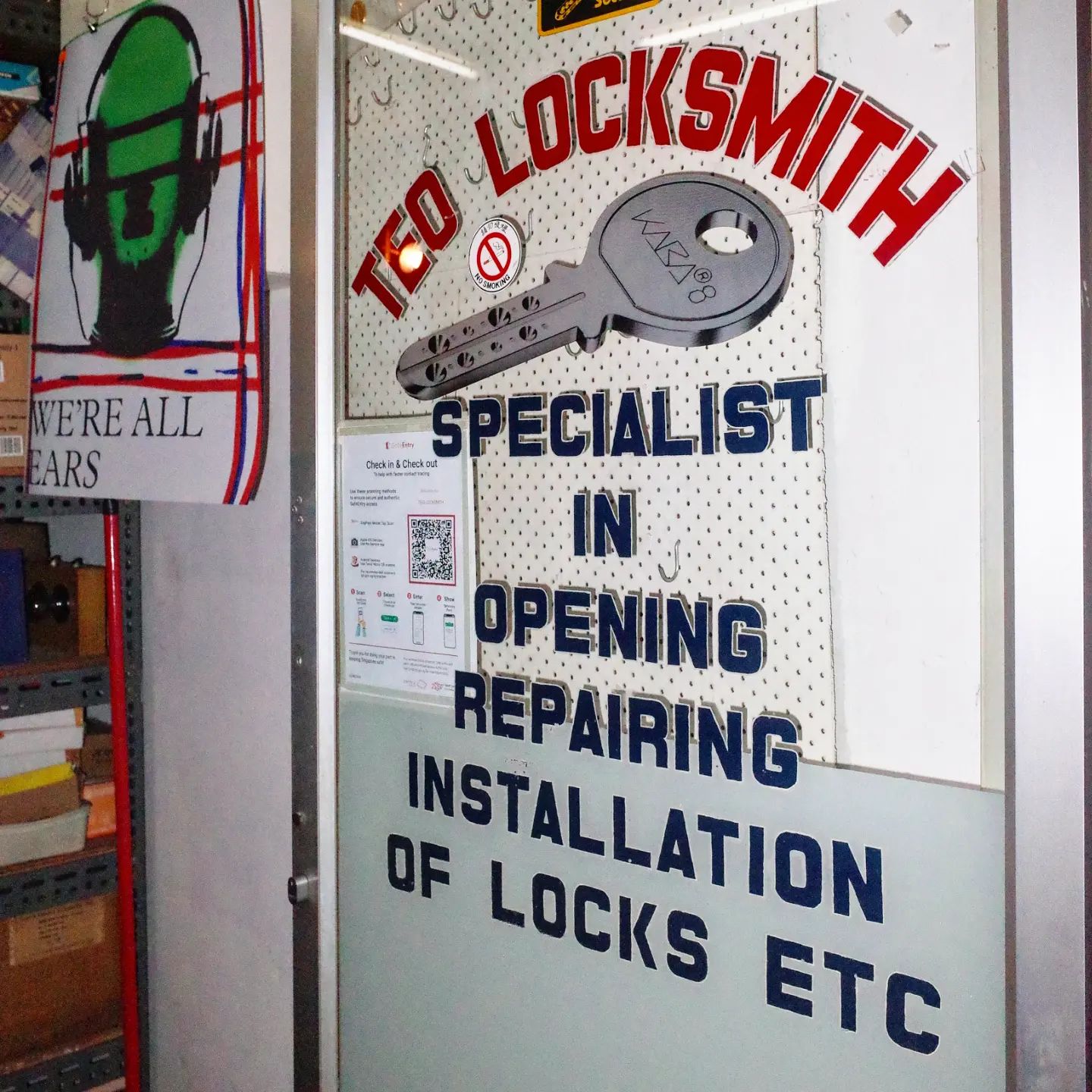 Nestled in a humble corner of Golden Mile Tower, the old school signage in bold blue font spelling “Teo Locksmith” serves as the storefront for SHRUB.