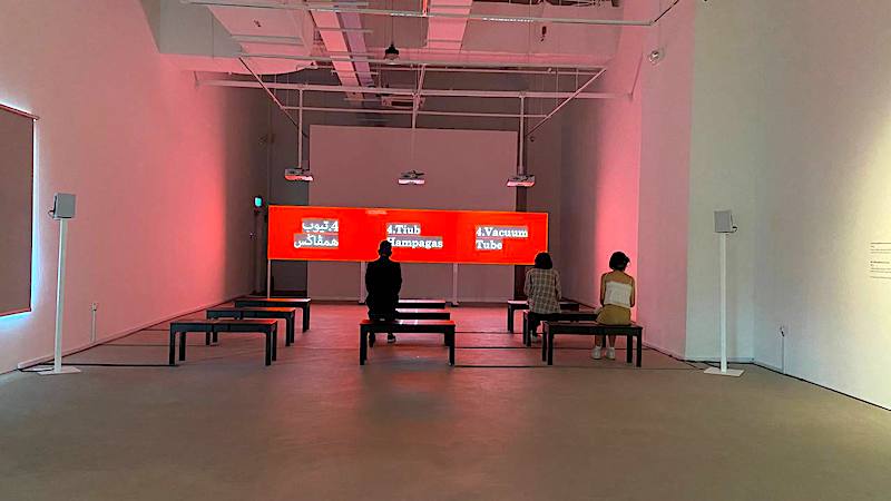 The exhibit features two of his works, Kecek Amplifier Bersama Nik Shazwan (2019) and My Video Making Practice (2021), as well as specially-designed benches made in collaboration with researchers at Singapore Institute of Technology. They make use of low-frequency vibrations to accompany high-frequency audio from the video works, making for an all surround sound viewing experience.