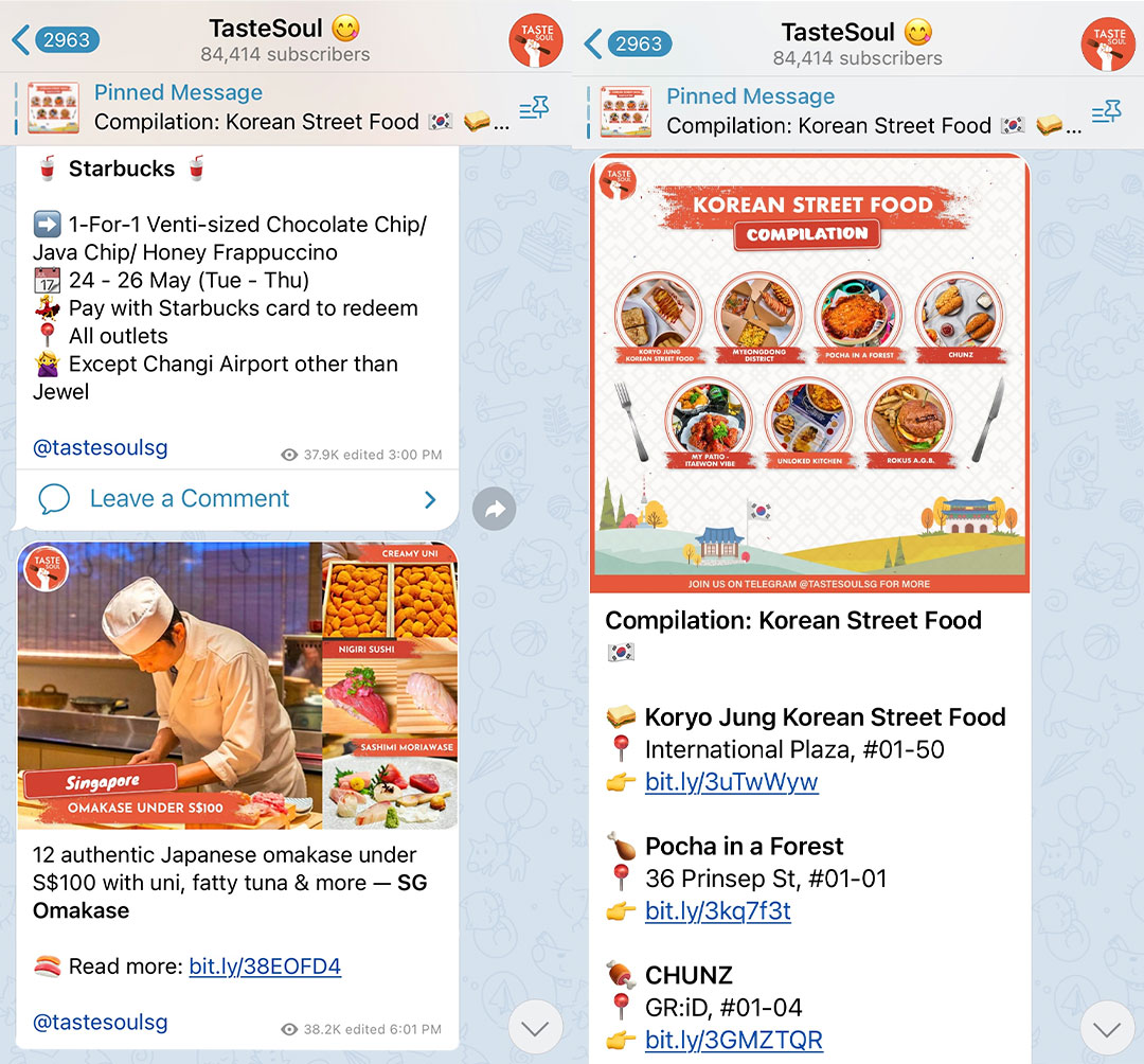 Taste Soul (previously known as SG Food Lobang) is the largest Telegram channel in Singapore that shares reliable food reviews and new recommendations.