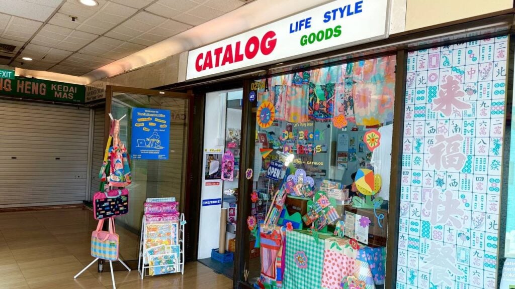 Nestled close to Bugis Street and conveniently located within Golden Landmark Shopping Complex, this charming office-themed store features trinkets and a large signboard that reads “CATALOG.” The store appears modest, as if it were preserved in time like any other vintage stationery store from the 1990s.