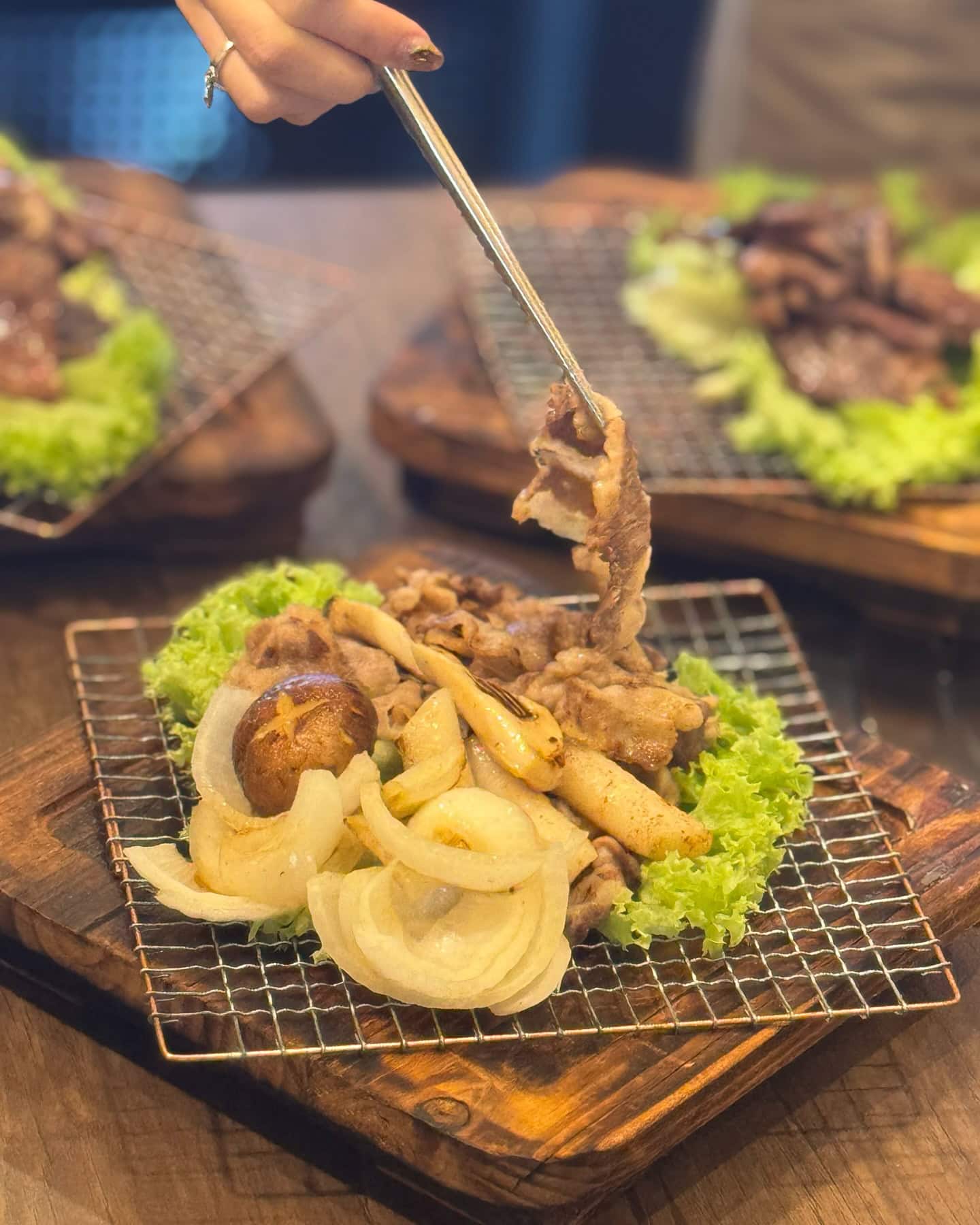 Pork BBQ Platter (S$90) also includes pork belly, pork jowl, and pork collar, all grilled to juicy perfection in front of you.