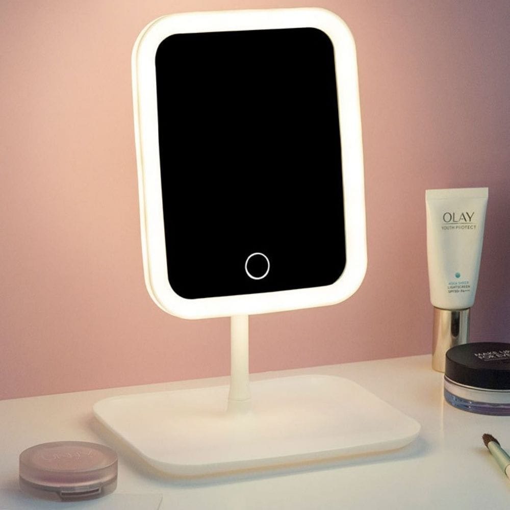 Check out this LED makeup mirror with a storage tray that also comes with adjustable brightness modes to cater to different times of the day.