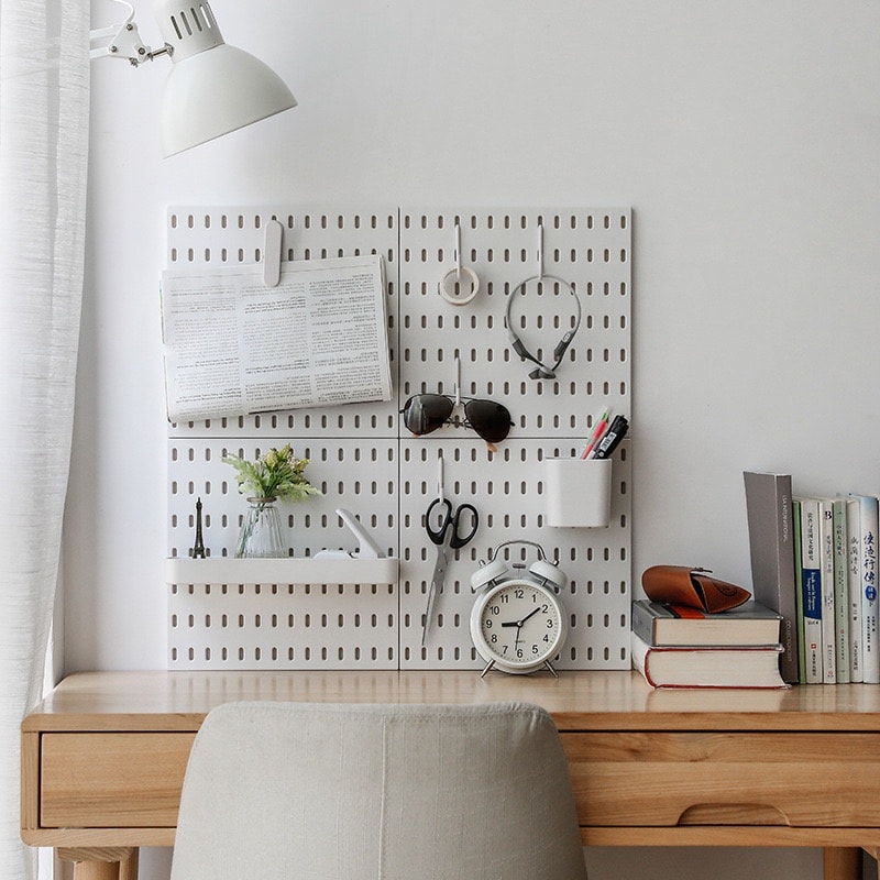 A pegboard suits those who enjoy the minimalist and clean look. Hang a few Polaroids of you and your family or postcards and personal notes from friends to lift your spirits.