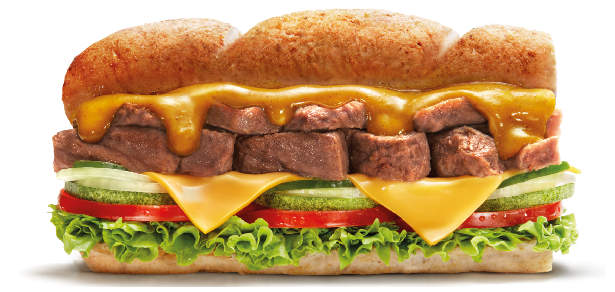 The sub features sweet, savoury, and mildly spicy sauce drizzled over a crispy breaded chicken cutlet or chunky strips of steak. Balance it out with crisp vegetables and you’re in for a mouthwatering treat!