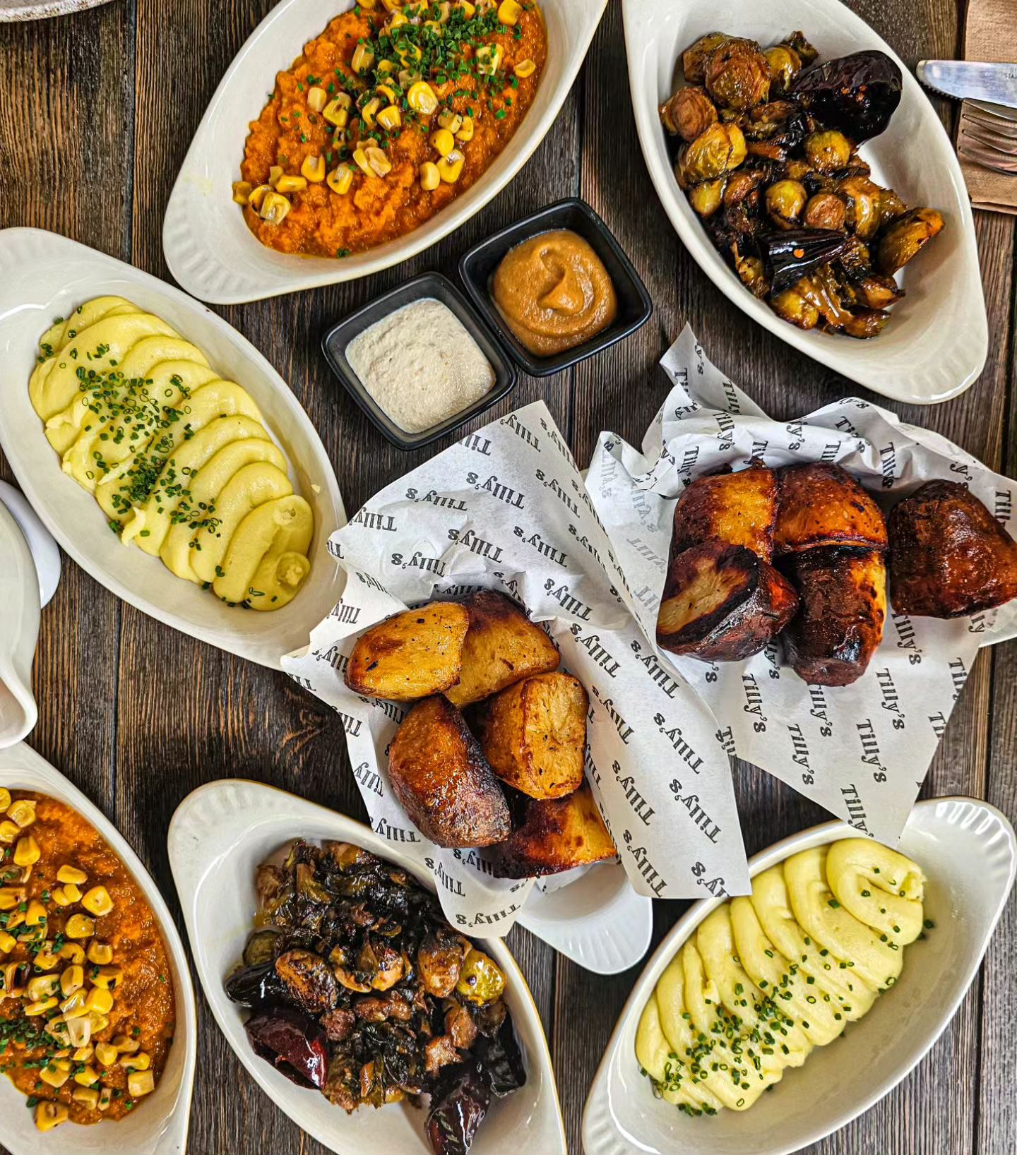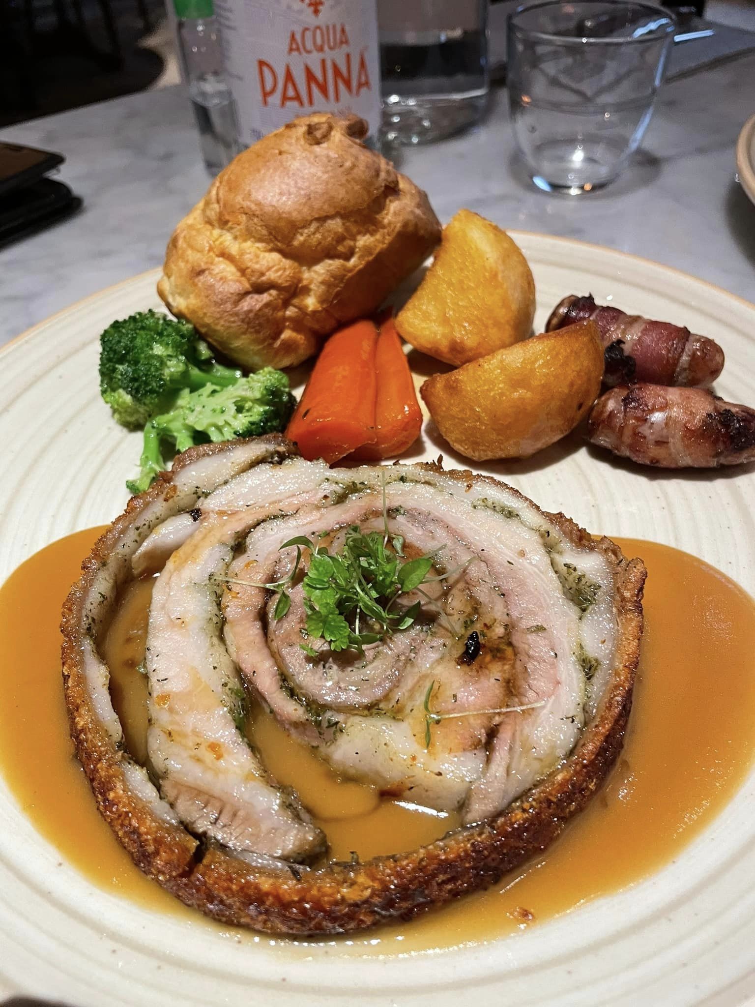 Regardless of which protein you go for, you’ll find each plate heaving with all the works — Yorkshire pudding, roast potatoes, sauteed seasonal vegetables, pigs in blankets, and traditional gravy.