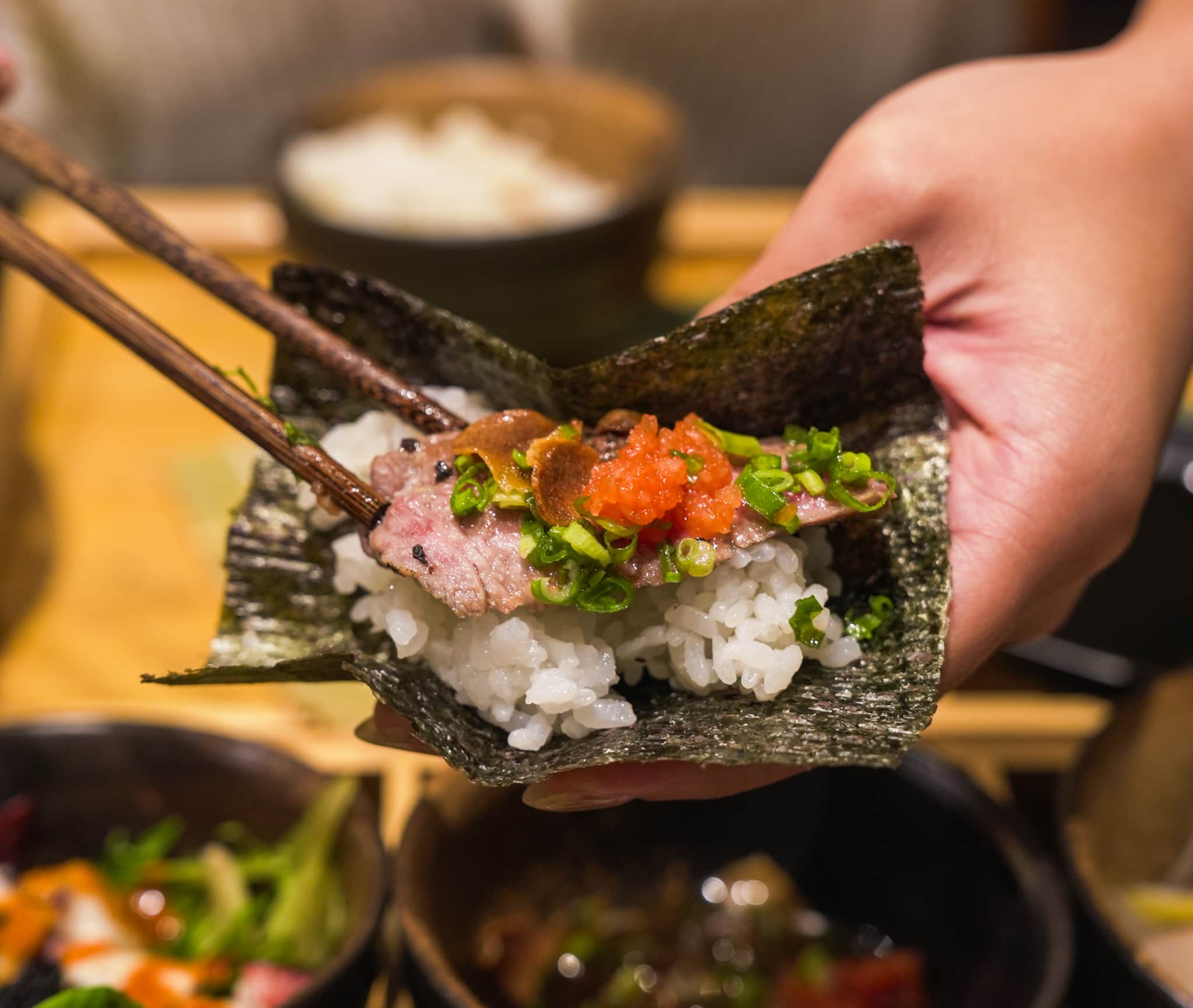 It also comes with sushi rice, inari and seaweed for you to pair with the dishes — kinda like a DIY sushi of sorts. My favourite was the Beef Tataki paired with some sushi rice and seaweed.
