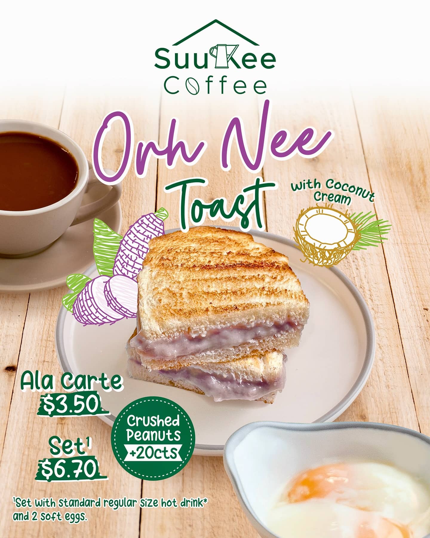 You can choose to enjoy it A La Carte (S$3.50) or as a Set (S$6.70) with two soft-boiled eggs and a standard regular-size hot drink.