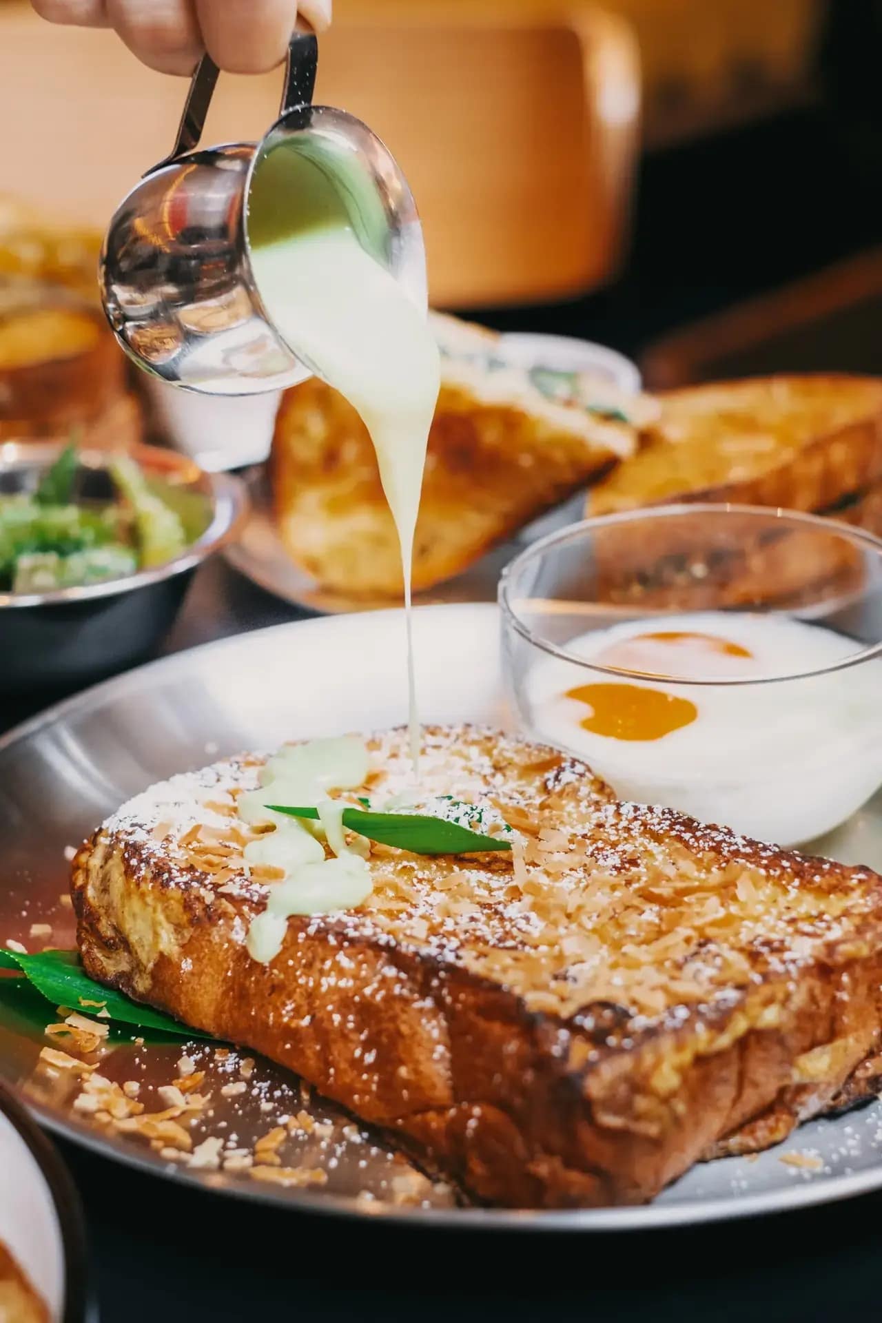 You definitely have to give their crowd-favourite Kaya French Toast and Dippy Eggs (S$17) a go. It comprises thick brioche french toast with pandan kaya custard alongside two soft-boiled eggs — kinda like your traditional kaya toast set.