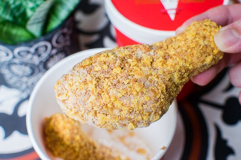 The ‘chicken’ centre is vanilla ice cream and the details are nailed down to a tee with a chocolate ‘bone’ that’s not only edible, but also adds a tiny cocoa-y touch to the dessert. The ice cream is encased by an outer made of feuilletine and cornflakes that form the ‘crispy crust’ of the confection.