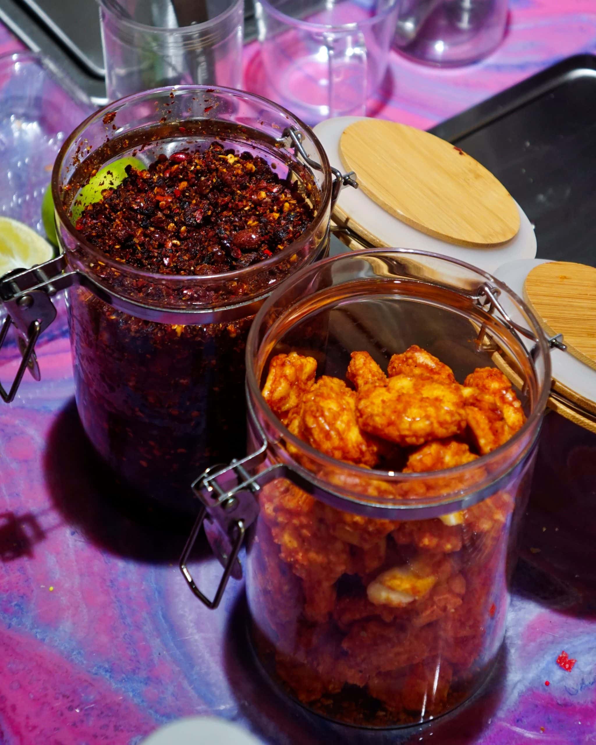 As a lover of all things sour and spicy (but not numbing), I decided to go for a base of Cream Cheese gelato, with Lao Gan Ma and Spicy Rice Cracker as my mix-ins, topped off with Candied Yuzu Peel and a sprinkling of lime zest.