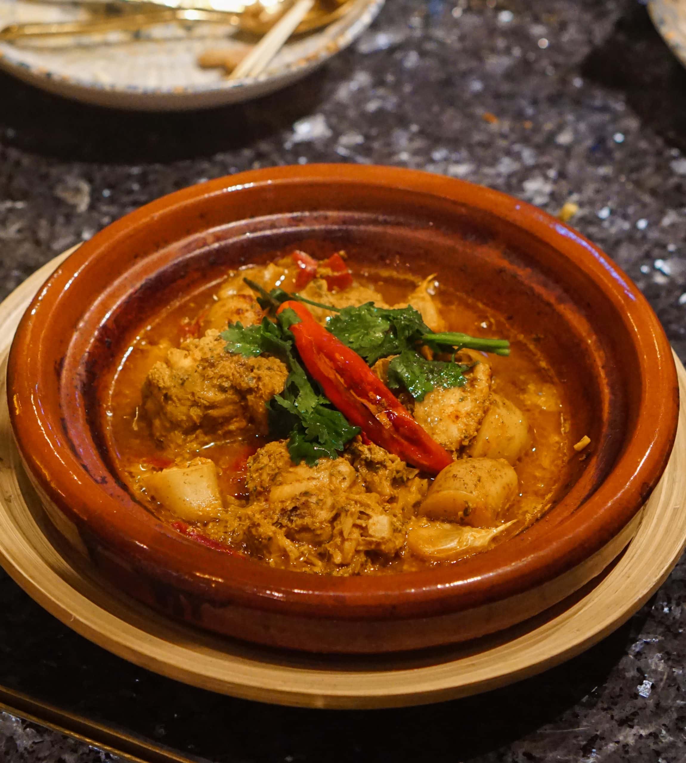 We opted for the Poulet (S$68), which easily serves two or more, comprising a filling of chicken chunks with turmeric, roasted almonds, orange blossom, and dried fruits, the kind you’d associate with mince pies and Christmas pudding.