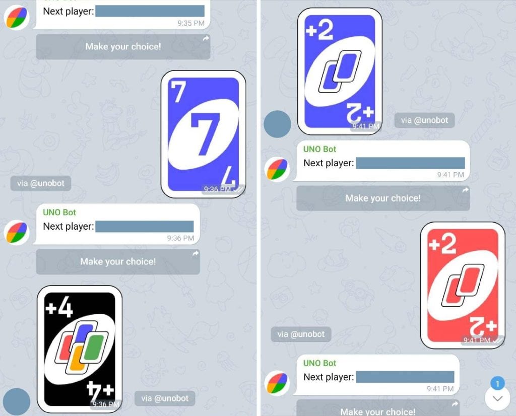 Now available on Telegram, Unobot simulates the much loved UNO experience straight from our devices. For those who are new to this game, Unobot deals playing cards to individual players when playable cards are shown in your inventory.