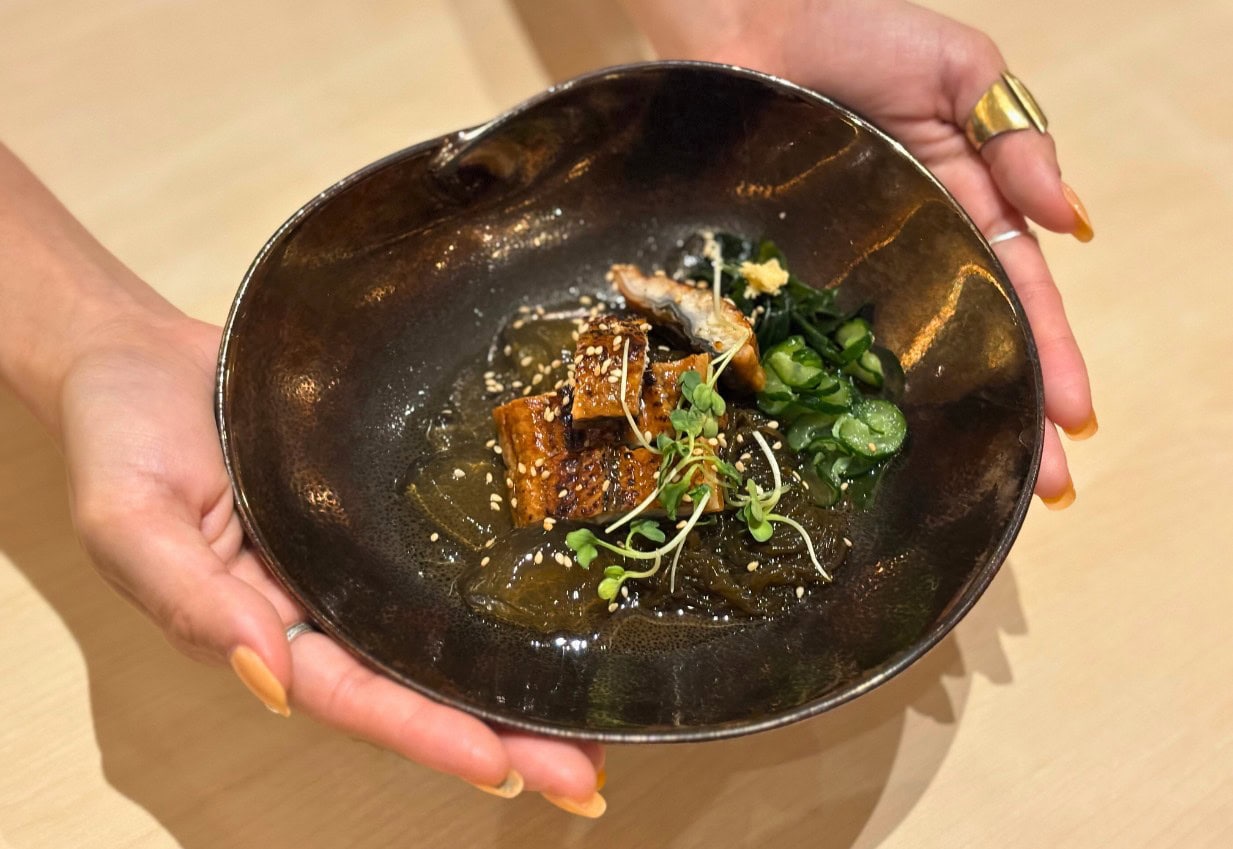 The cold dish mostly consists of Mozuku seaweed, which reminded us of chewy Konjac noodles texture-wise. The dish also had jelly made from Japanese limes, which added brightness to the seaweed and slices of grilled unagi.
