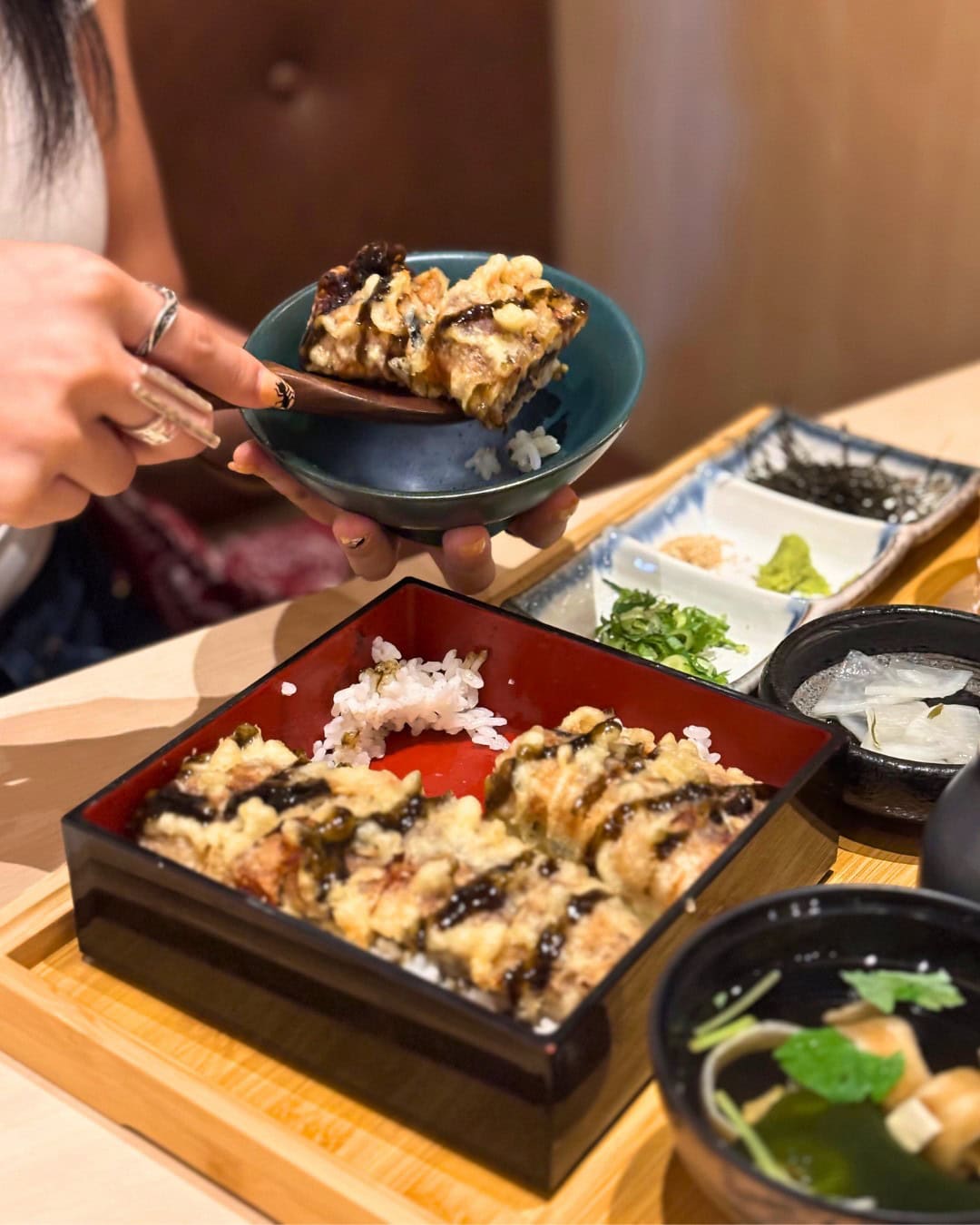 Finally, we’re at the star of the show — the Unagi Tempura Hitsumabushi (S$28). We were recommended to eat the rice on its own, then with the condiments, and finally with the genmaicha dashi.