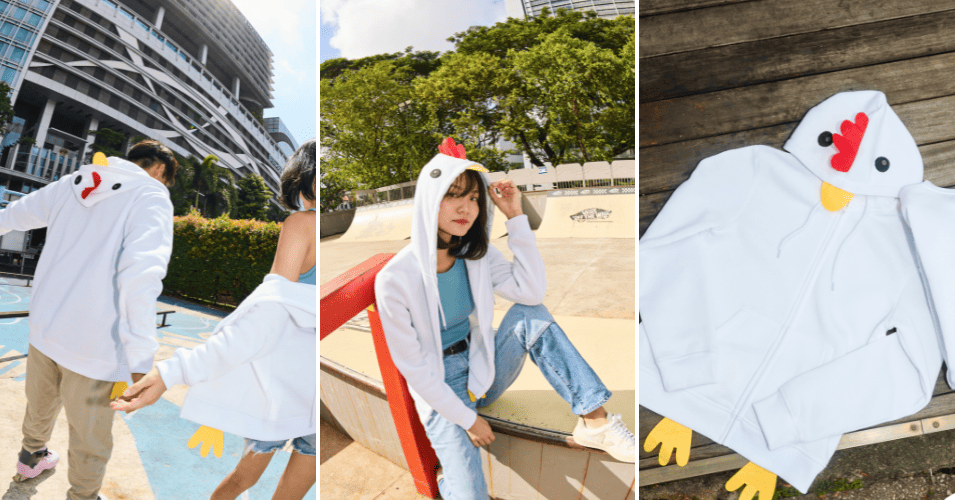 The hoodie comes in three sizes — kids, large, and extra large. Imagine getting all three just to form a cute family of chickens of your own, how adorable would that be! The hoodie comes free with every purchase of the Chicken Get-Together Set (S$34.90) and is only available while stocks last.