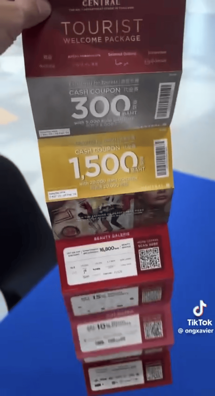 From now until 31st December 2023, you’ll be able to redeem an exclusive Central Shopping Centre Tourist Welcome Package that has a total value of up to S$380 (THB10,000) for free.