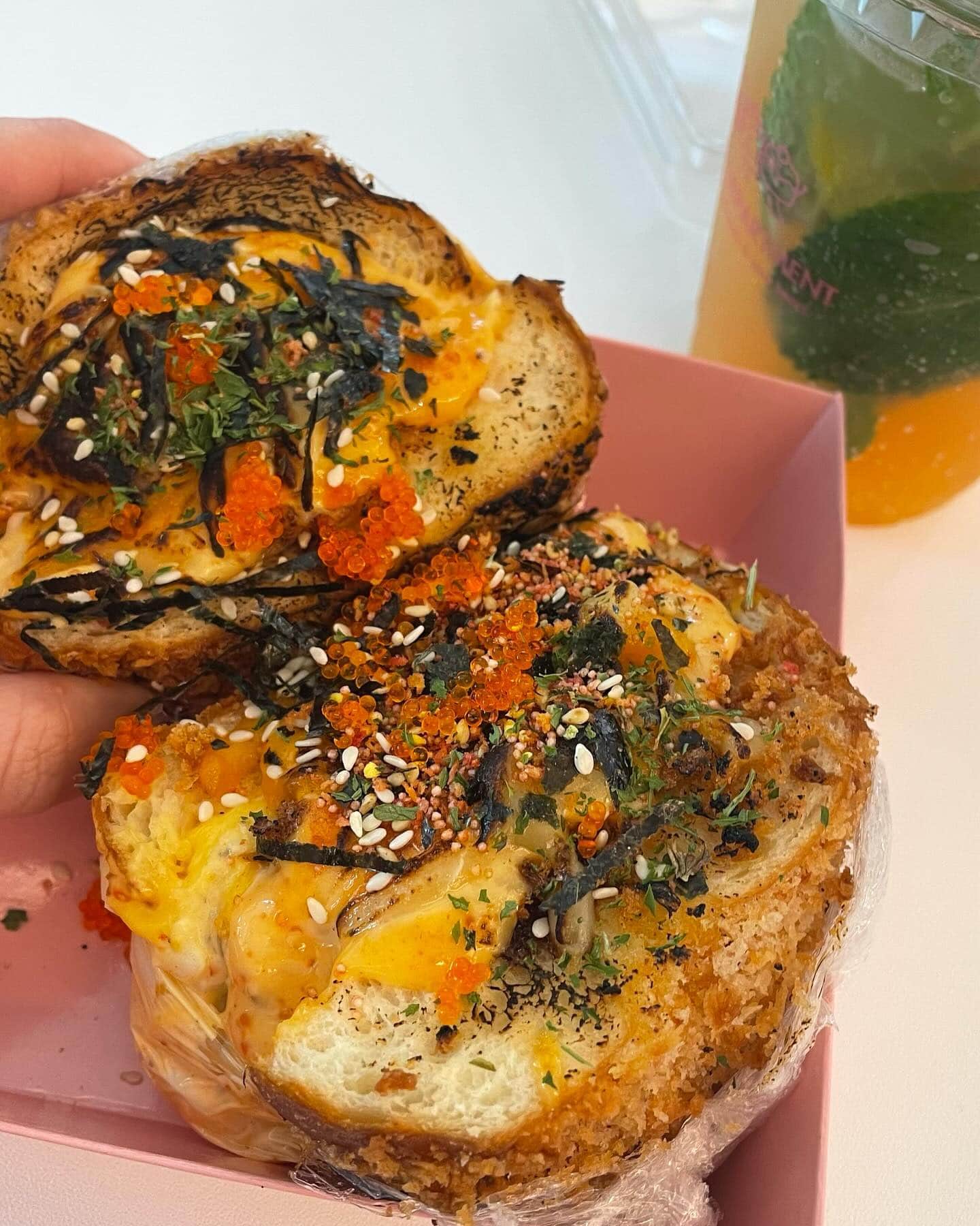 For something a little more savoury, go for the Salted Egg Yolk Bagel (S$15) with crispy cereal chicken and garlic butter or Aburi Mentaiko Egg Mayo Bagel (S$14) for lunch instead.