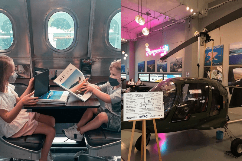 Hidden away in an aircraft hangar within the Seletar Aerospace district is Hangar66 Cafe, an aviation-themed cafe with an actual auto-gyrocopter parked inside. Here, you’ll find plane windows that will make you feel as though you’re really on a flight, runway markings on the floor, and a view of the private jet runway at Seletar Airport.